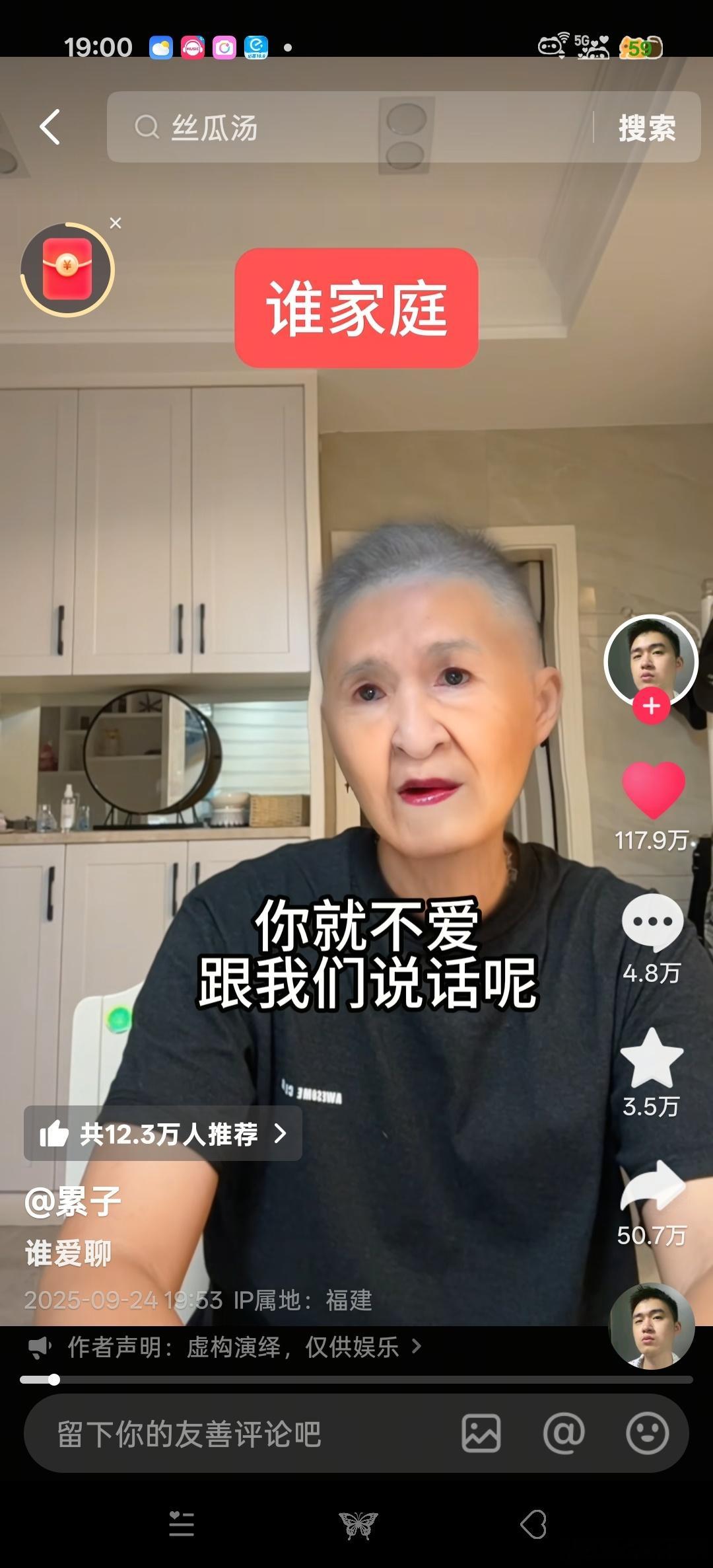 抖上“丝瓜老奶”这条视频《为什么我不爱跟长辈们说话了”下面的评论收图》………丫头