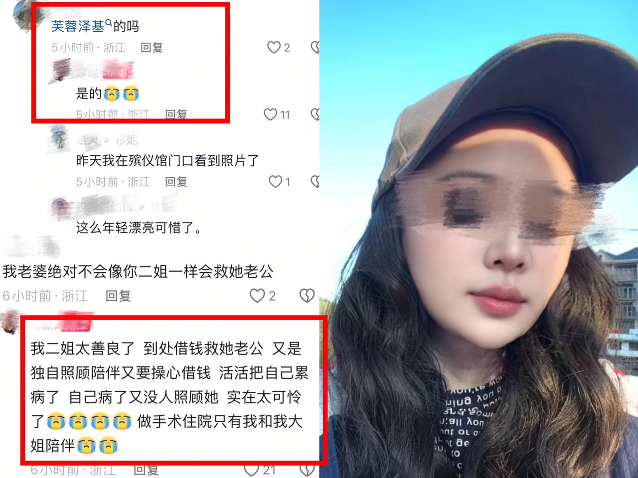 珍惜每一天,意外不知何时就发生了,温州乐清芙蓉镇,这么漂亮的女子,40多岁说没就没了,老公患上白血病,四处筹钱救治,万幸把老公救回康复了,令人痛惜的是女子自己累垮病倒,确诊肠癌,令人意外的是,女子妹妹称姐姐住院期间只有自己和大姐在照顾,非常心酸!