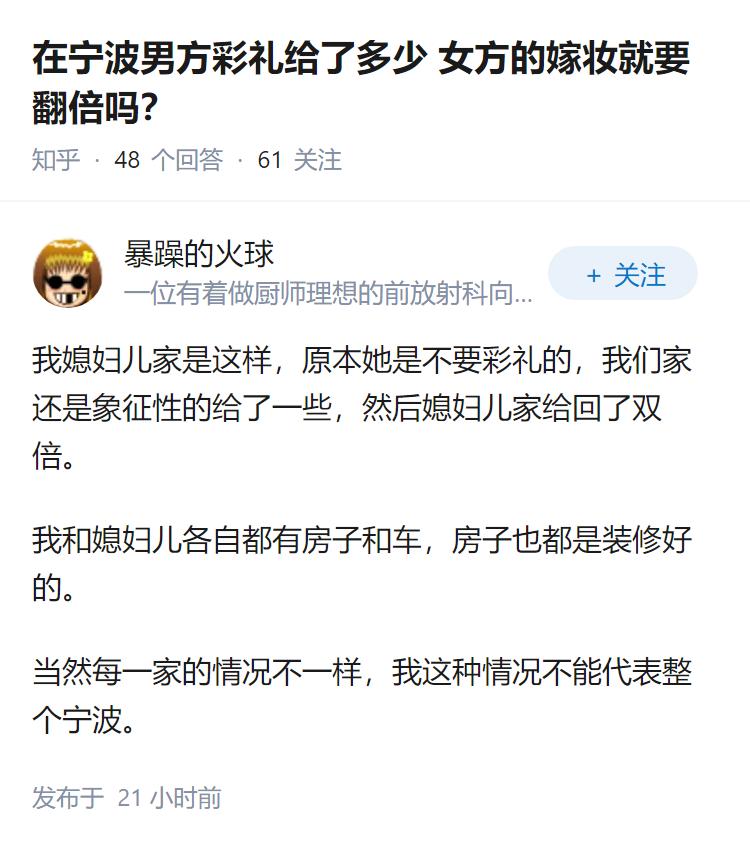 在宁波男方彩礼给了多少女方的嫁妆就要翻倍吗?