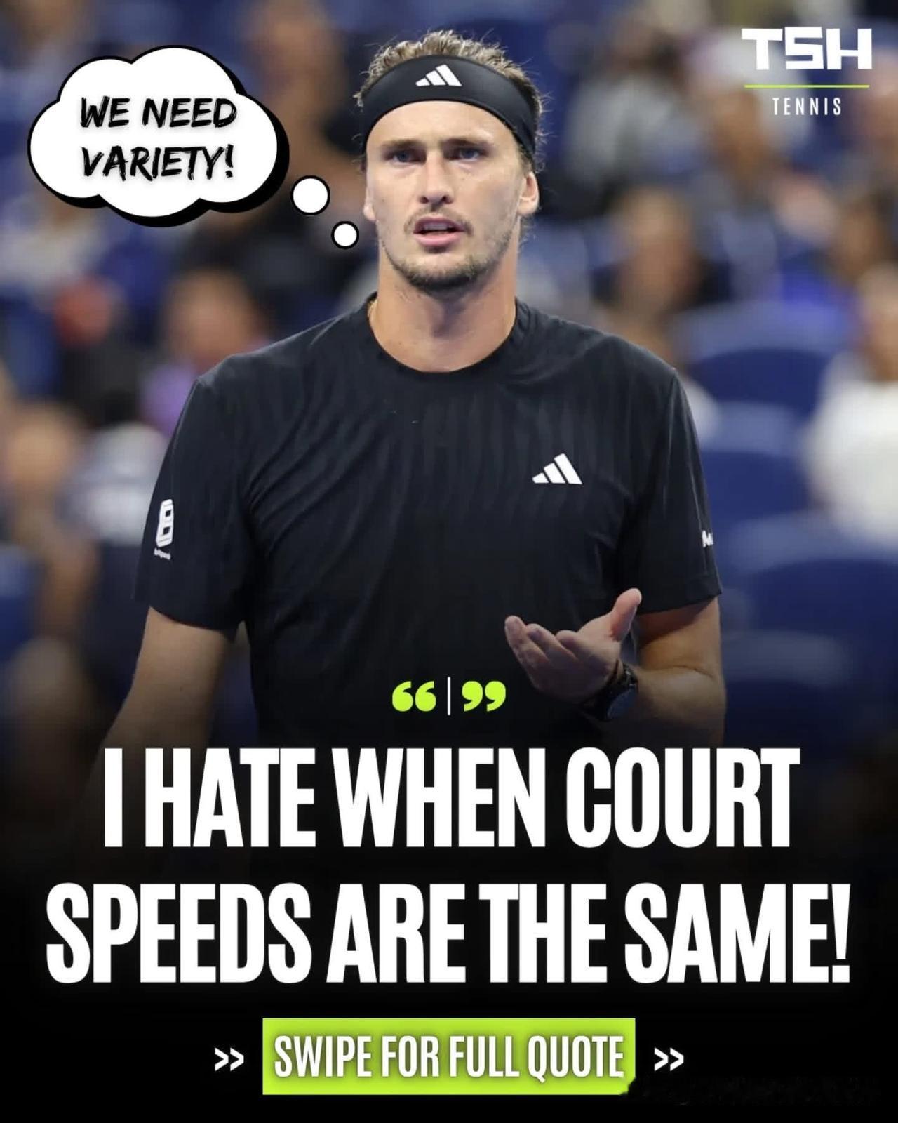 亚历山大·兹维列夫在赢得上海大师赛第二轮后被问及球场速度较慢的问题时,表达了与费德勒相同的感受:“我讨厌一成不变的比赛,我知道赛事总监们正在朝着这个方向努力,因为他们显然希望扬尼克和卡洛斯每站比赛都能取得好成绩我们一直使用不同的场地,在草地、硬地和红土上,你不可能用同样的方法打同样的网球,但如今,你几乎可以在任何场地上都用同样的方法打球。” 大家认为兹维列夫说得有道理吗?