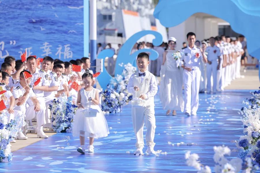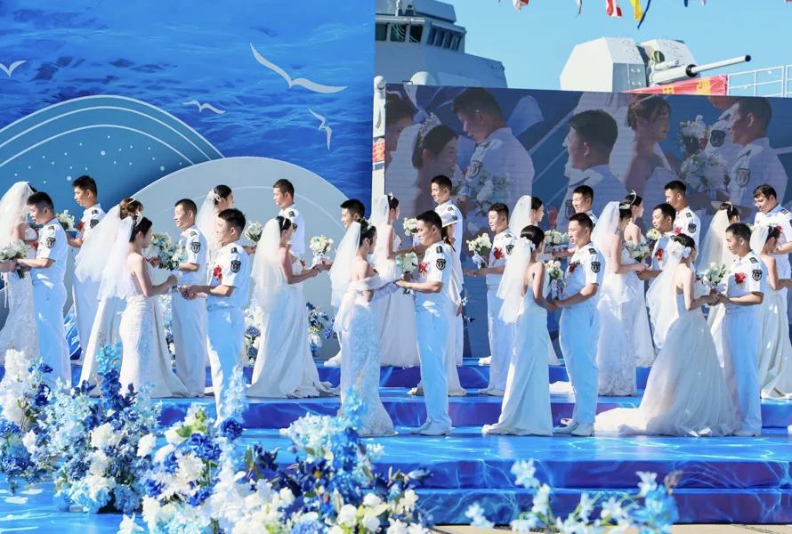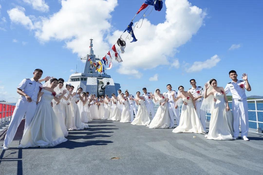 万吨大驱“舰”证幸福!国庆期间,南部战区海军某驱逐舰支队两艘“万吨大驱”,在顺利完成海上战备任务返港归建,“舰”证该支队第三届“爱在深蓝·‘舰’证幸福”集体婚礼。50对新人在军属和战友的祝福中步入幸福的婚姻殿堂,开启人生崭新篇章。