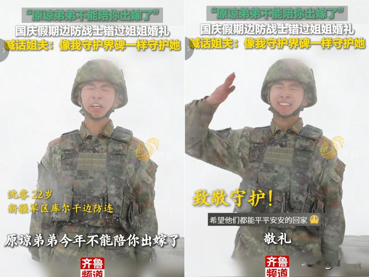 浙江湖州的新娘穿着婚纱正接祝福呢, 大屏突然切到弟弟的视频, 第一句“姐姐,原谅我没法陪你 出嫁”一出来,新娘的眼泪直接就掉下来了。 视频里全是大雪,弟弟裹着厚棉袄站在“中吉1号界碑”旁,脸冻得通红,后背是茫茫雪山,身前是界碑,站得笔直。 他没说啥漂亮话,就说“我在这儿守着,祝你新婚快乐,希望姐夫像我守界碑一样守着你”。 其实谁都懂,姐姐出嫁,弟弟最该在身边帮着拎裙摆、挡酒,跟姐夫“放狠话”,可他偏在边防线上,踩着雪、迎着风,对着界碑送祝福。 哪儿是他欠姐姐一场陪伴啊,是他把陪姐姐的时间,拿来守着咱们所有人的家——雪地里的界碑冷得刺骨,可他说的话、做的事,比婚礼上任何贵重礼物都热乎。 真不是咱容易感动,是这种“把小家放身后,先顾大家”的实在劲儿太戳人了。 婚礼上的眼泪哪儿只是心疼啊,更多是骄傲——有个守着家国的弟弟,这份祝福比啥都金贵。 你们身边有没有这种看着平常,却在关键时刻让人忍不住竖起大拇指的?新娘弟弟致辞 婚礼泪崩