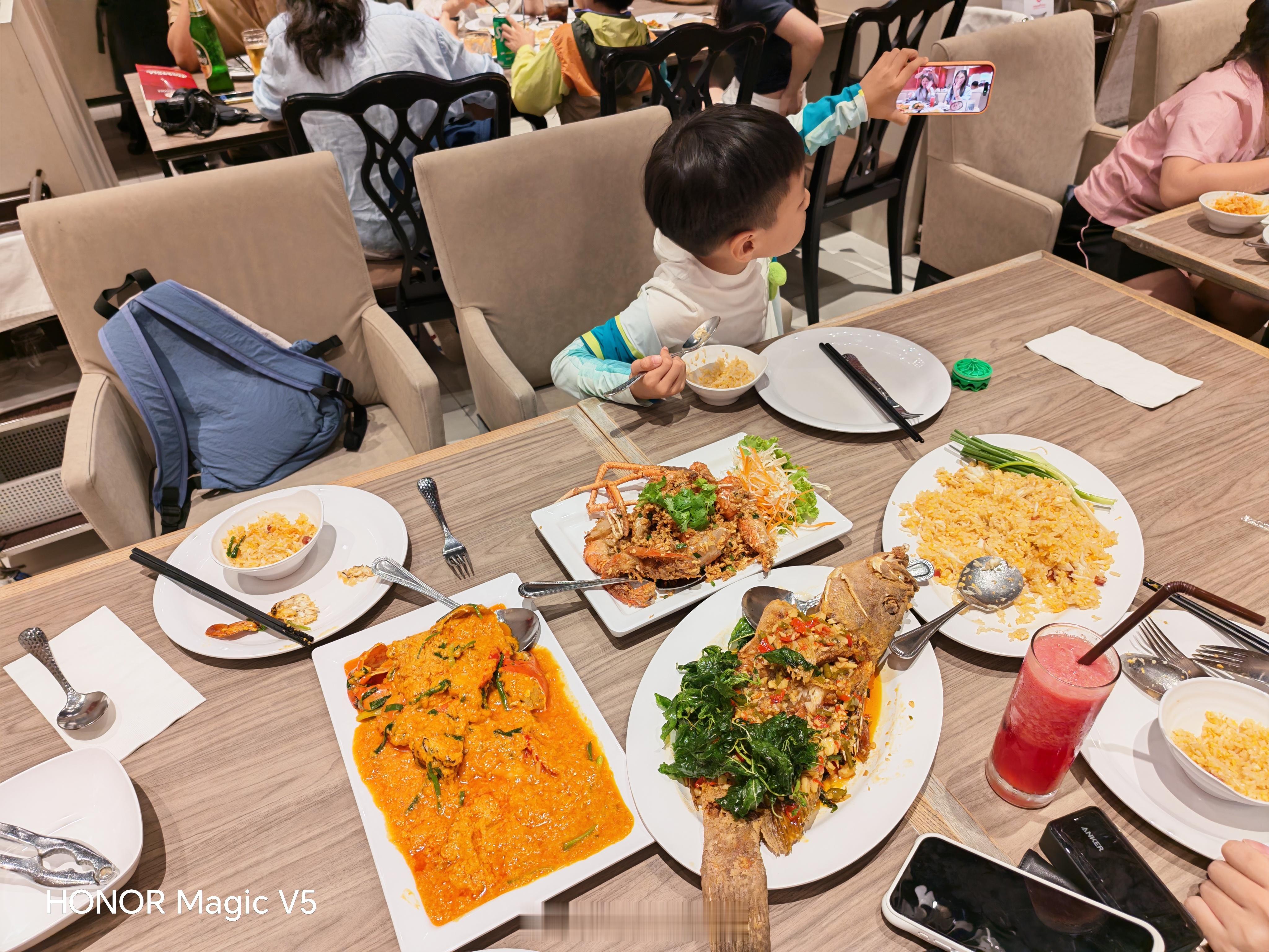 朋友推荐的曼谷美食之一难怪昨天那么多人来这边消费是真便宜咖喱蟹,蟹肉炒饭,炸石斑