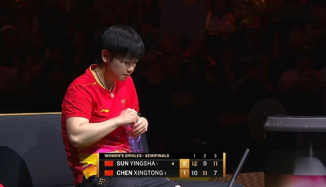 WTT中国大满贯女单第一场半决赛,一场艰苦的比赛,孙颖莎以12:10;9:11;11:7;8:11;11:9;11:9的比分战胜队友陈幸同,率先晋级决赛,静候王曼昱和韩国选手申裕斌的胜者。 孙颖莎的晋级之路,一路都是内战。首轮战胜队友削球手朱思冰,次轮战胜队友王晓彤,8进4经过七局大战战胜了队友王艺迪,半决赛4:2战胜了陈幸同。决赛极有可能对决王曼昱。作为世界第一,这个签还是非常难