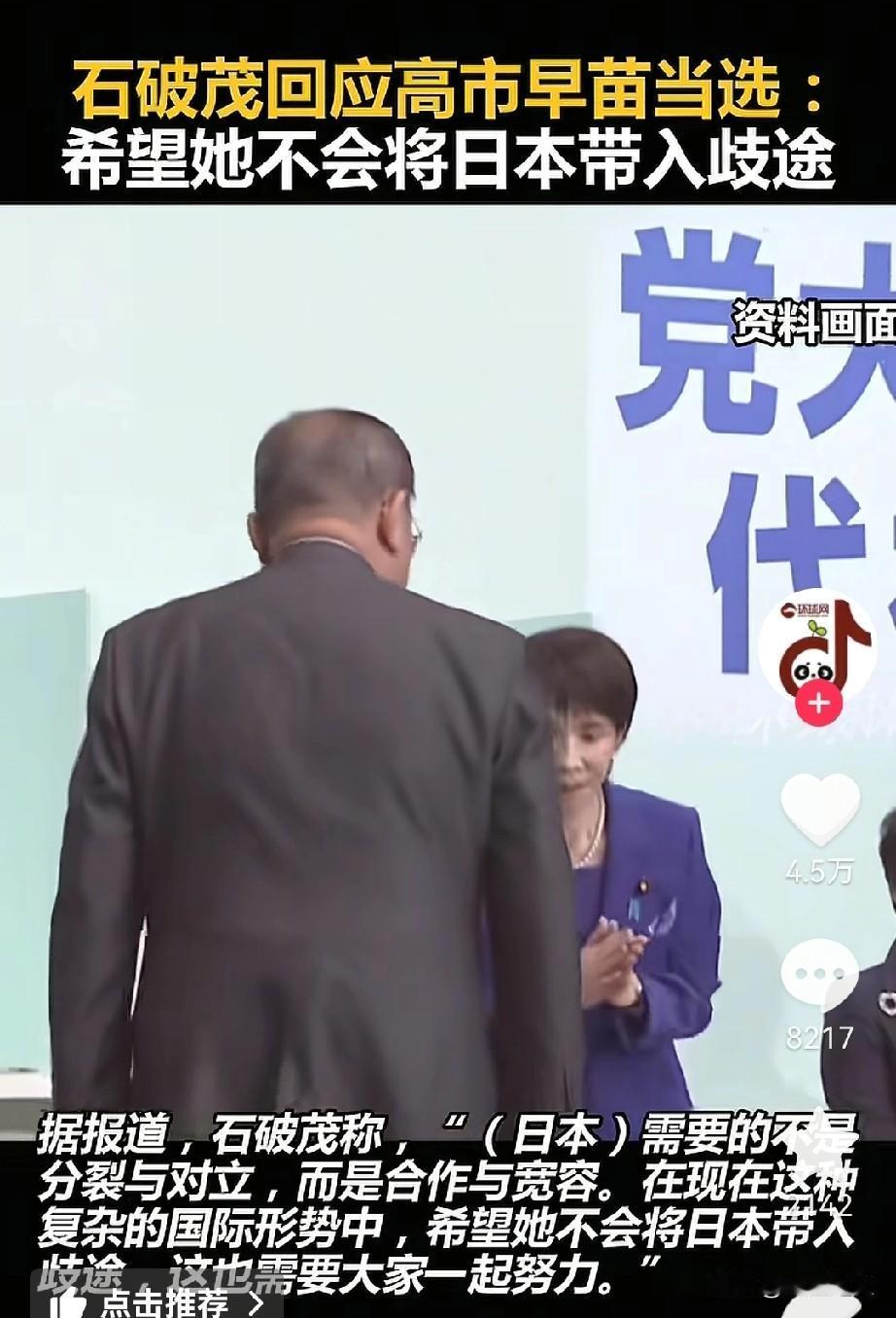 石破茂对高市早苗当选进行表态,他尽管说的话语含蓄,但表露出了对日本未来的担忧