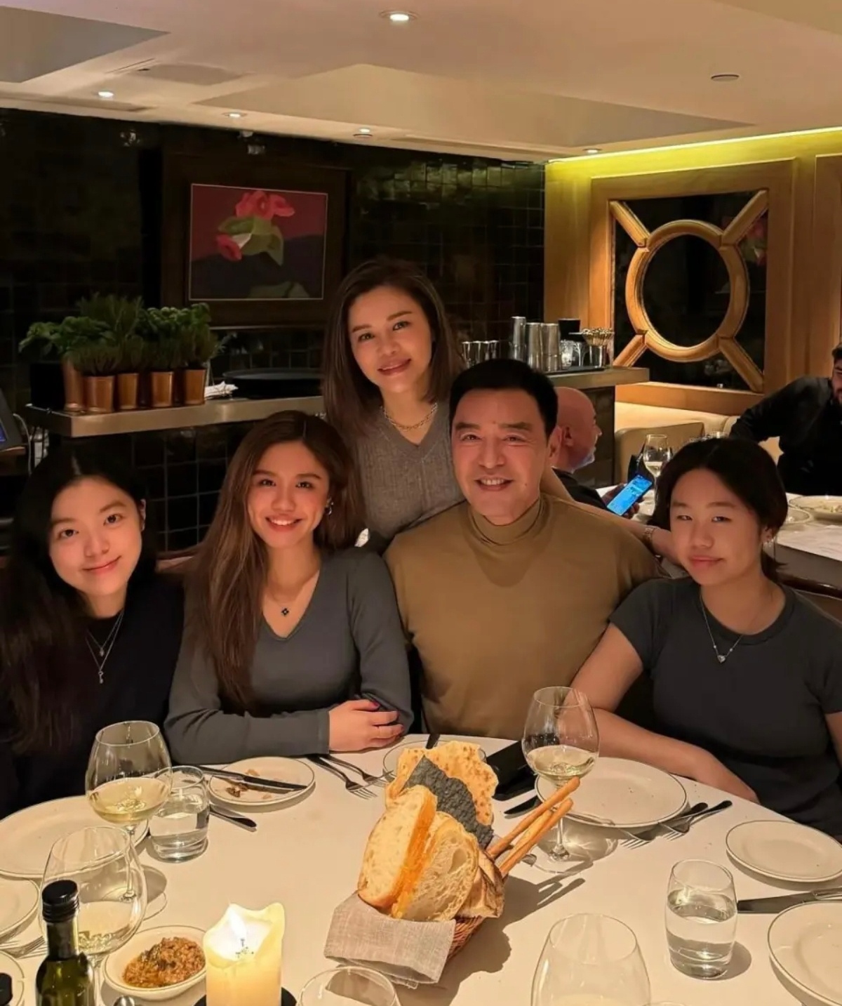 钟镇涛为老婆范姜庆祝54岁生日,图一左边和右边的女孩都是钟镇涛和范姜的女儿,只能说基因真奇妙呀~