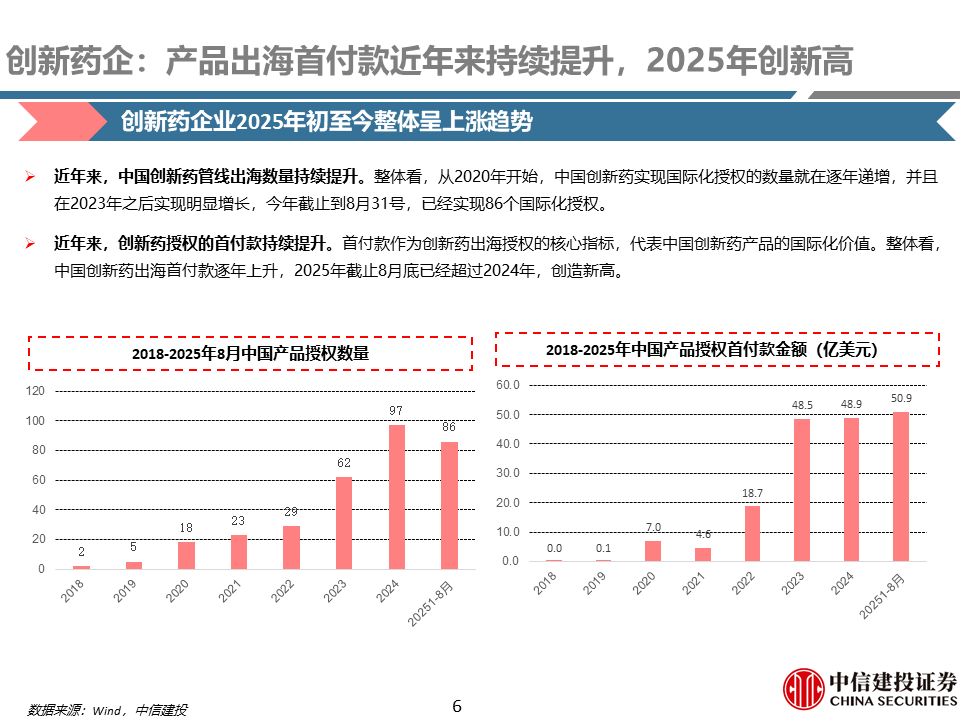 中国诸多创新药资产近年来逐步进入全球视野,临床数据在各类学术会议上占据越发重要的地位,BD授权金额及数量持续攀升,全球影响力持续扩大。伴随着临床数据的驱动以及持续强化的BD预期的催化,创新药板块在25H1迎来一轮估值的修复,越来越多中国资产的全球价值开始获得认同。