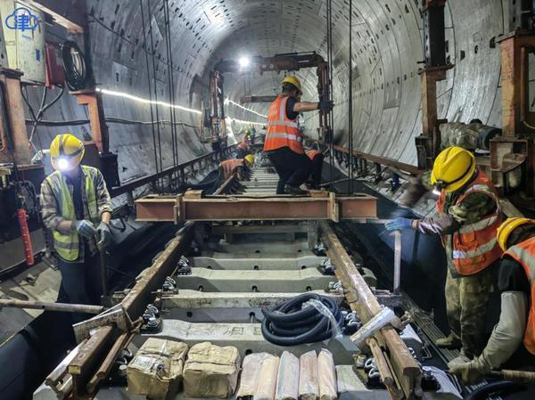节日我在岗|地铁8号线铺轨现场:轨排叮当声里的“进度不打烊”