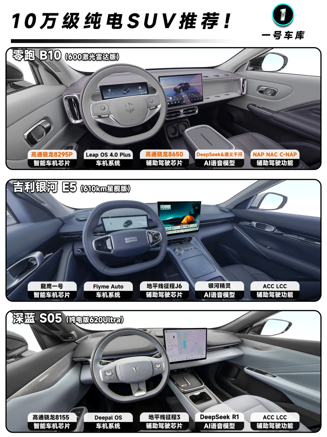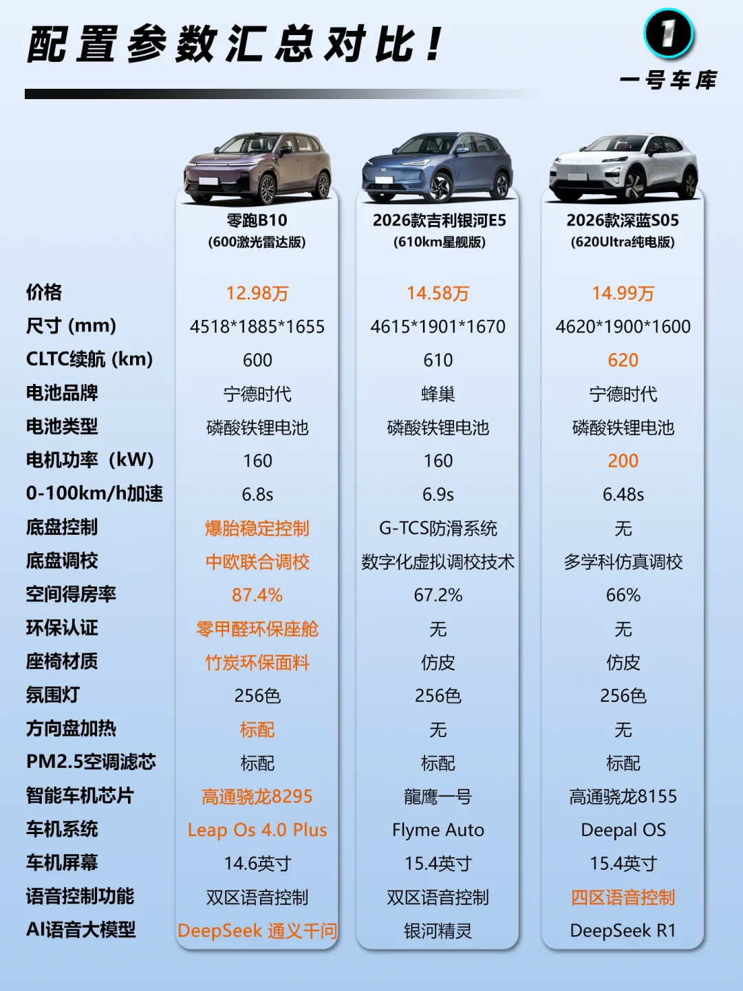 是不是很多小伙伴在买车时挑花了眼[看R],尤其实在10-15万这个价位区间,竞争是相当的激烈!像零跑 B10、吉利银河 E5 和深蓝 S05 这三款纯电 SUV,也是有相当多的小伙伴后台私信询问我,到底要选哪台车才更适合咱普通家庭?所以近期博主也是将三款车都全面试驾了一番,今天就跟大家唠唠它们的真实体验!