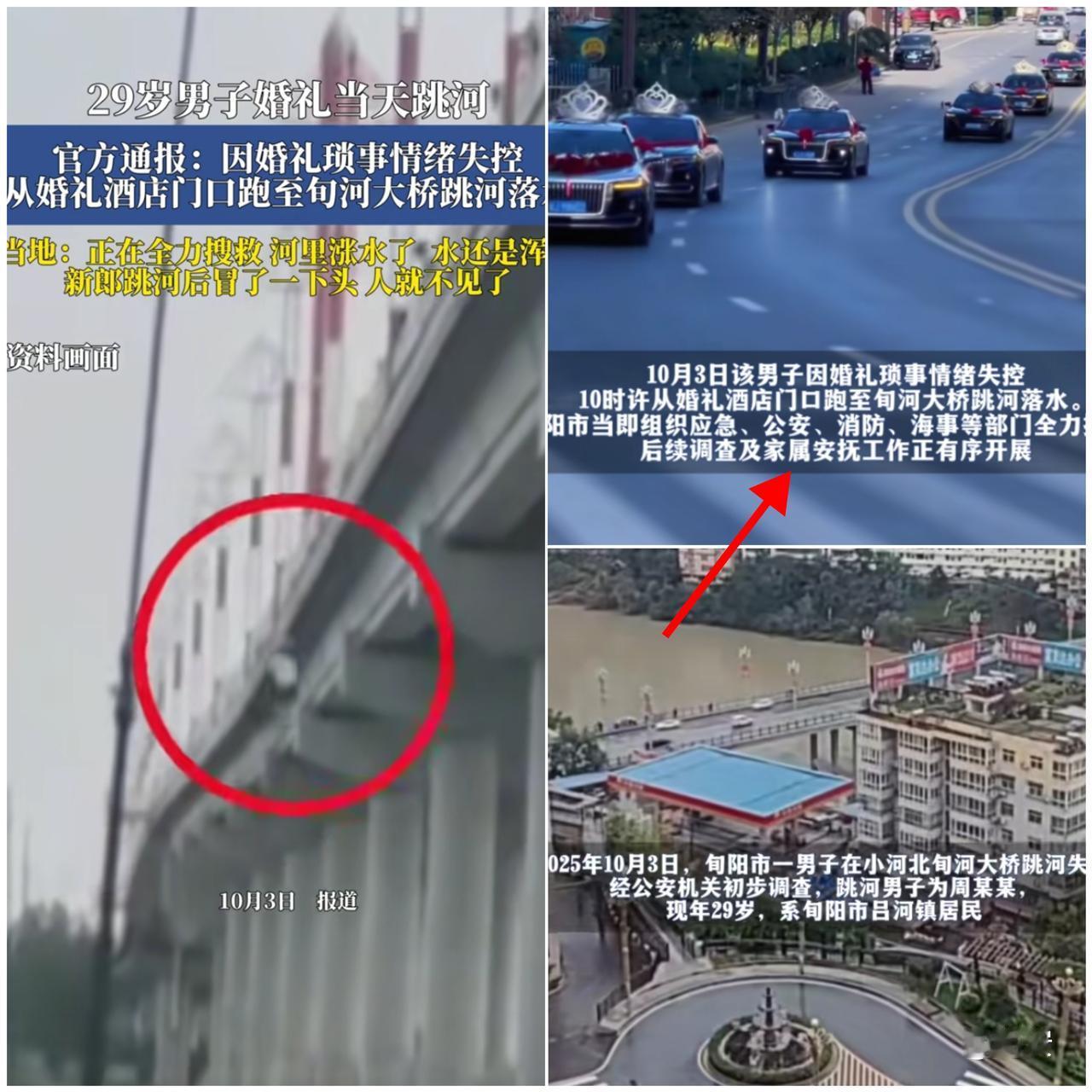 结婚当天新郎跳河,至今没找到! 他爸说不是彩礼也不是 新娘不下车,可是不管啥原因,这一步也太让人揪心了! 总有人觉得“过不下去就逃”,可结婚不是单选题,不想结可以说,觉得难可以停,为啥非要选最极端的路? 尤其要是独生子,爸妈后半辈子的指望咋办? 这哪是解决问题,分明是把难题全扔给了最亲的人。 咱们成年人的世界,谁没点扛不住的时候? 但“扛不住”不代表“能放弃”,连面对的勇气都没有,咋对得起把自己养这么大的父母? 你身边有没有人遇到事就钻牛角尖? 要是你朋友遇到这种坎,你会咋劝他? 评论区说说,咱一起聊聊咋好好扛事儿!跳河自杀