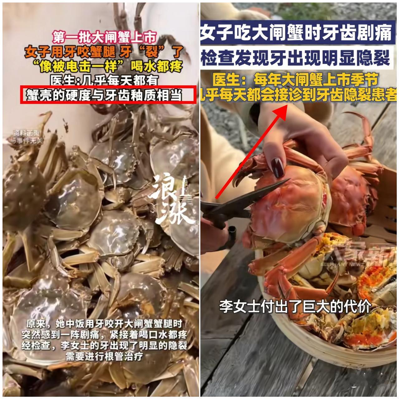 家人们谁懂啊! 杭州李女士啃个螃蟹腿,居然把牙给崩裂了! 一开始还以为只是咬到硬东西疼一会儿,结果喝水都钻心,去医院一查直接要做根管治疗,后续几个月都没法好好吃饭,这螃蟹吃得也太“亏”了! 你别觉得这是个例,其实螃蟹壳硬度和咱们牙齿的牙釉质差不多,相当于用牙齿“硬碰硬”,赶上牙齿本身有点隐裂或者龋坏,一使劲就容易崩。 很多人总觉得牙齿结实,啃骨头、咬坚果、开酒瓶啥都用牙,可牙齿哪经得住这么造? 真不是我危言耸听,吃螃蟹这种带硬壳的东西,该用工具就用工具,蟹钳、蟹针又不麻烦,总比后续花时间花钱看牙强。 你平时会不会也用牙齿咬硬东西? 有没有过咬到硬物后牙齿不舒服的情况? 评论区聊聊,给更多人提个醒!