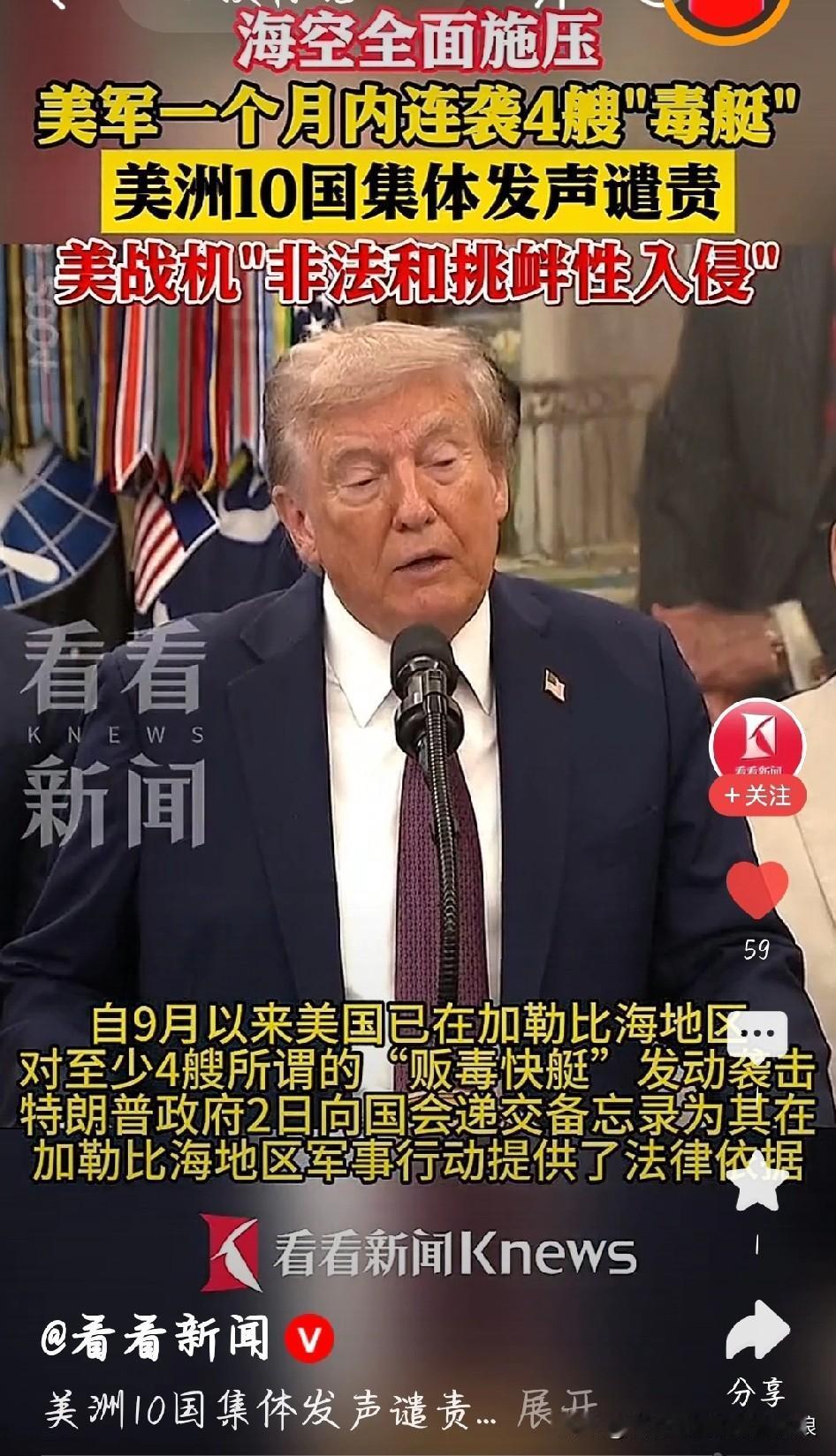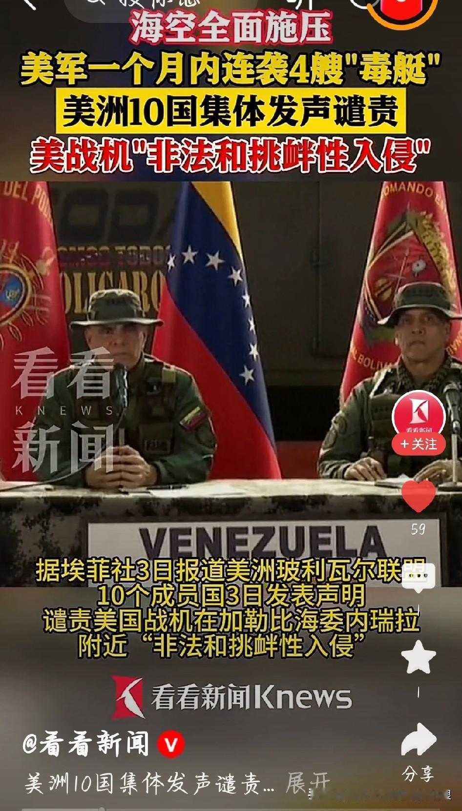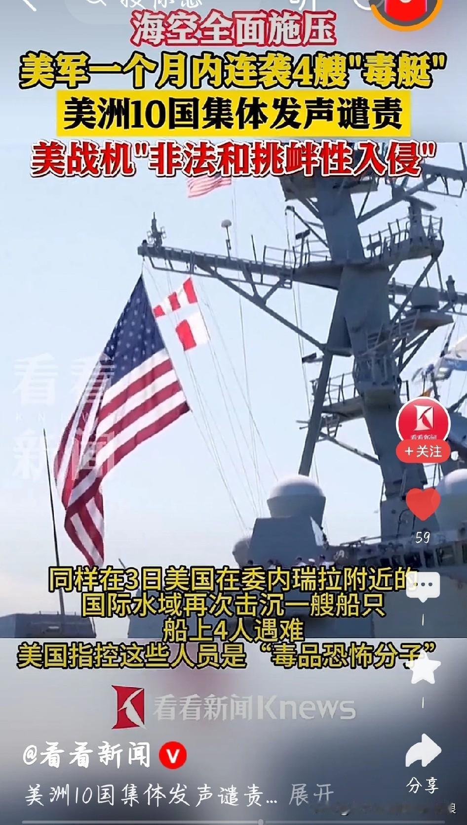 美军又惹众怒!多国怒批:这是谋杀 美军在委内瑞拉附近海域炸沉船只,宣称打毒贩,结果船上是4个平民,直接被炸死。哥伦比亚总统直接骂这是谋杀,古巴说美国就是故意找借口想侵略,玻利瓦尔联盟10国更是集体谴责这种挑衅。 不是第一次了,美军总拿“反恐”“禁毒”当幌子,在伊拉克、叙利亚乱炸,抢资源、杀平民,把地方搅得鸡犬不宁。嘴上说维护安全,实际走到哪,哪就动荡。 各国都在喊停手,要和平稳定。说到底,霸权那套早没人买账了,靠武力耍横,只会引火烧身!多国谴责美军行动 呼吁维护地区稳定