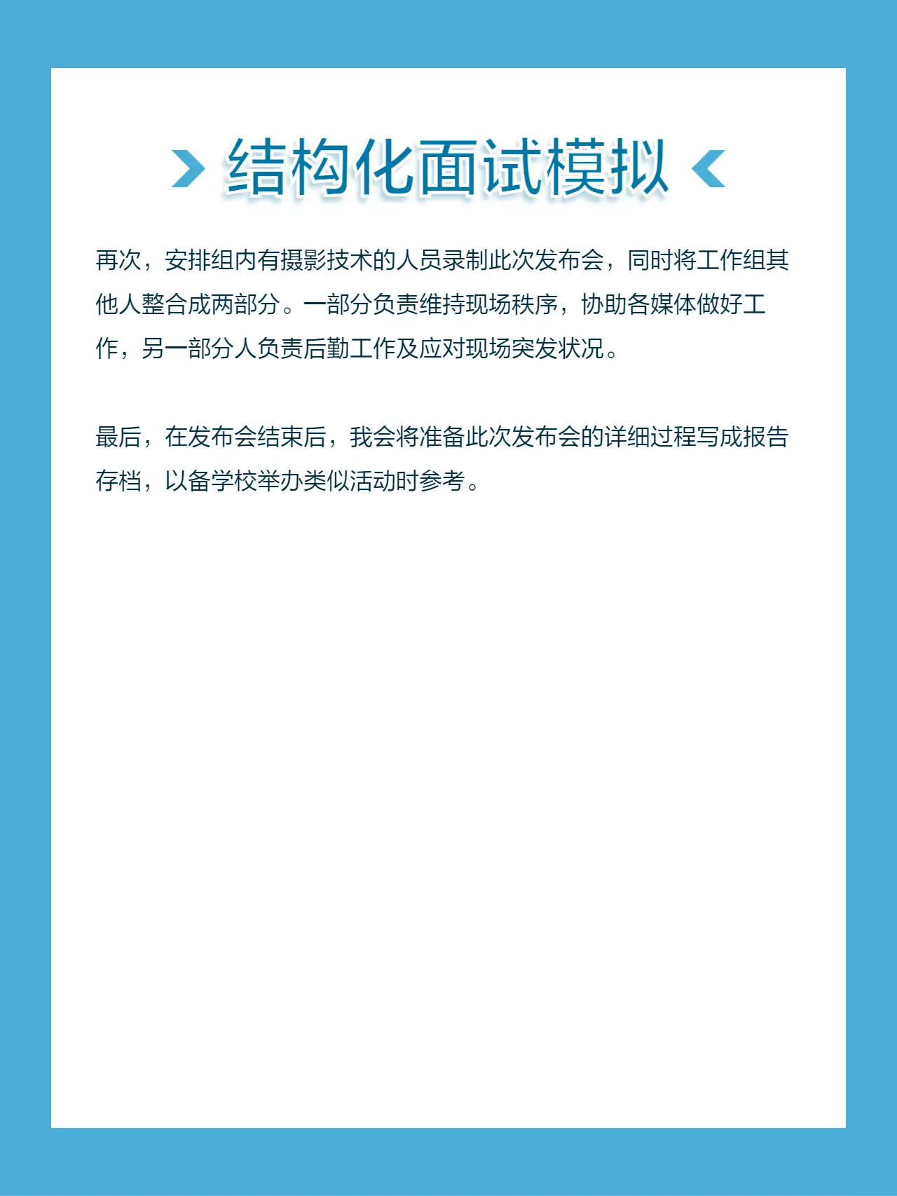 面试 结构化面试 考公面试 面试模拟学校针对事件开新闻发布会,作为学校员工,校领导让你组织召开此次新闻发布会你会怎么准备?