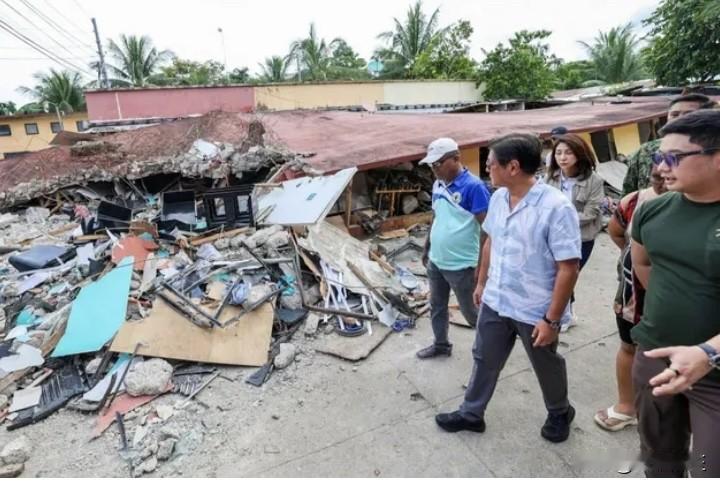 菲律宾总统小马科斯视察了宿务省受周四6.9级地震影响的灾民,以监督救援工作并向受
