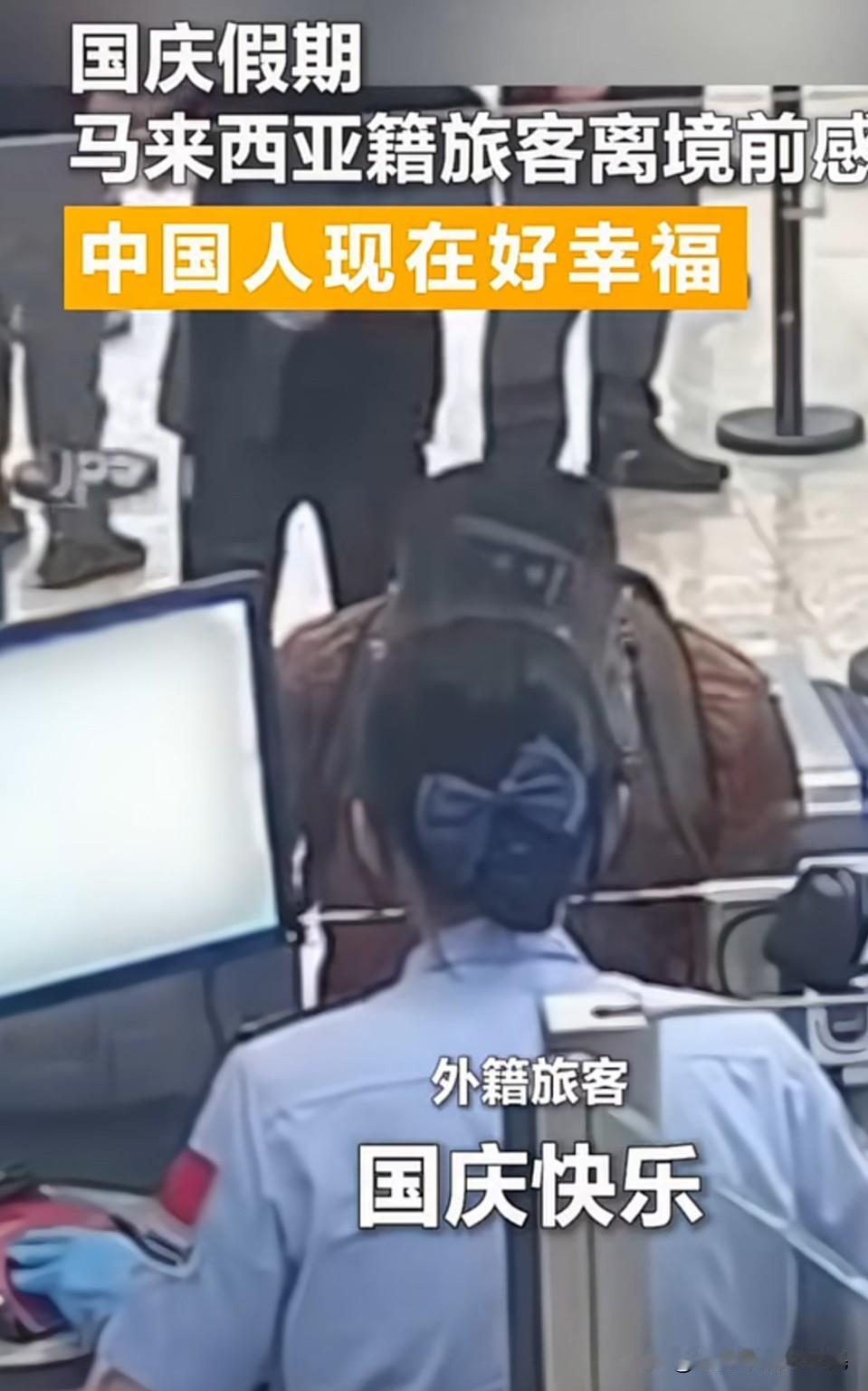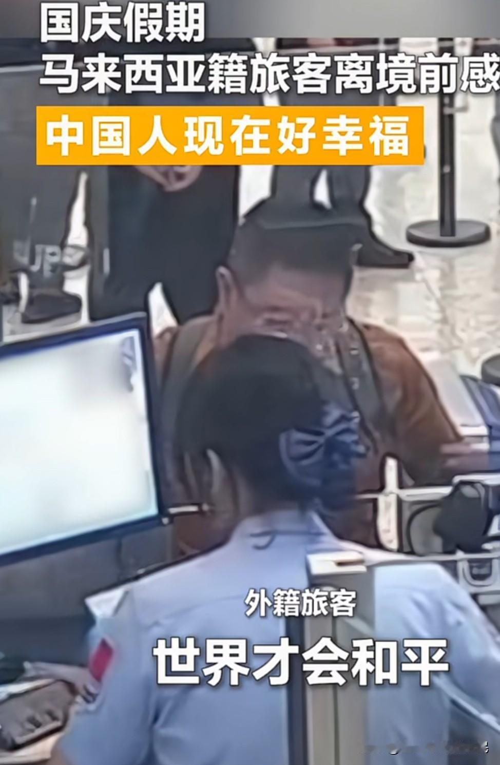 马来西亚旅客离境感慨颇多 这位外籍旅客离开时对工作人员说:国庆快乐,中国要继续强大,世界才会和平。国庆在步行街看到中国人现在👌幸福。 工作人员回说:大家都会很幸福, 欢迎您再来! 虽然很多人不理解,但真的有国才有家。外籍旅客看的透彻 ,中国强大,也是世界强大, 中国强大,世界才能和平! 这句中国要继续强大世界才会和平听后起了一身鸡皮疙瘩,好感动!何其有幸,生于华夏,祝愿我们伟大的祖国繁荣昌盛,国泰民安!