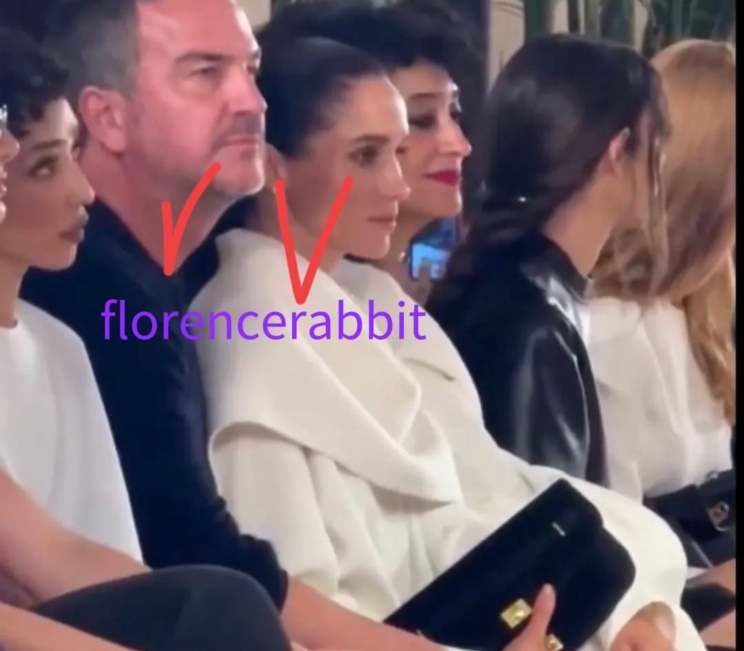 周六,梅根·马克尔首度现身巴黎时装周。 她身着白色纽扣衬衫与长裤,外披白色超大披