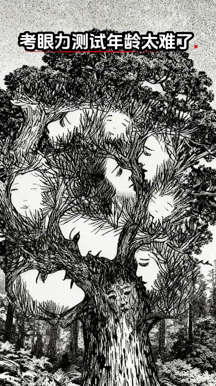 考眼力测试年龄太难了。 瞧瞧这张图,你能瞧见几张人脸?要是只看到四张,那可得劝你去测测自己的心理年龄了。我可是看到了七张人脸,结果一测心理年龄居然有六十六岁。这张图里人脸藏的可真巧妙,有的在树枝交错处,有的在树的纹理间,得仔细端详才能发现。 大家也快来试试,看看自己能找出几张,然后在评论区说说你的心理年龄,说不定会有意外发现。