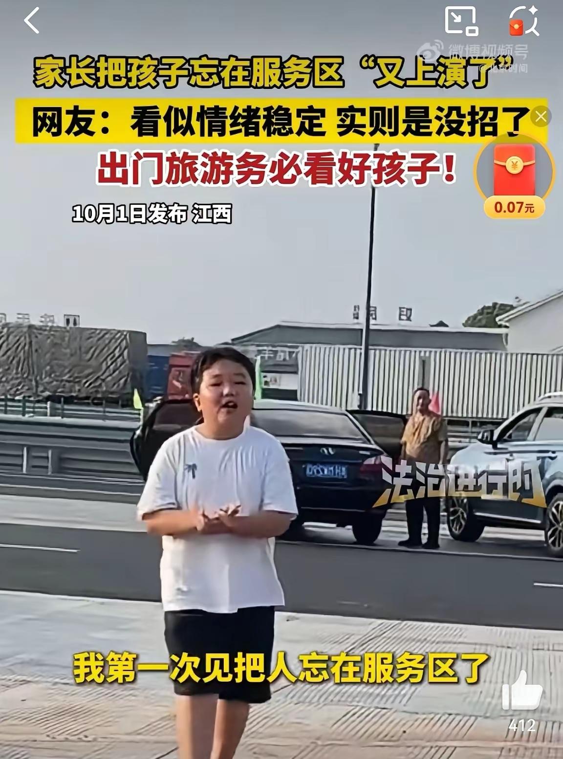 我第一次见到把人忘在服务区了,这是小孩哥被父母遗忘在服务区之后自嘲 这么大的一个