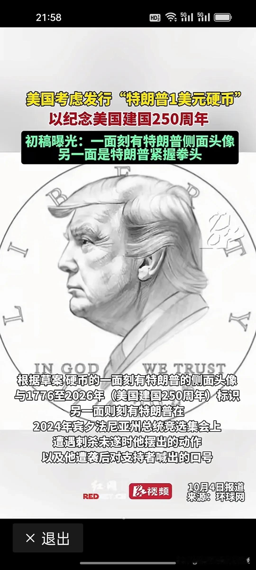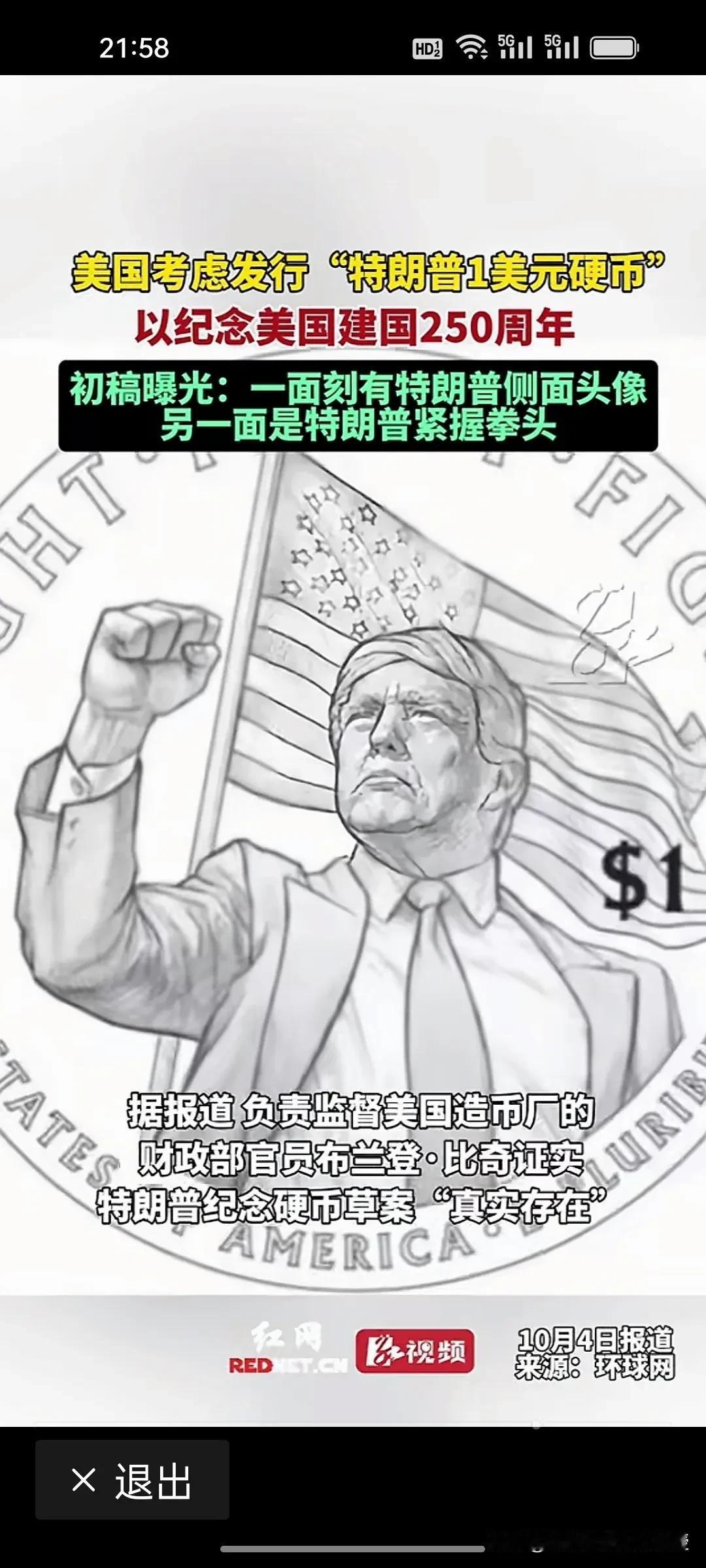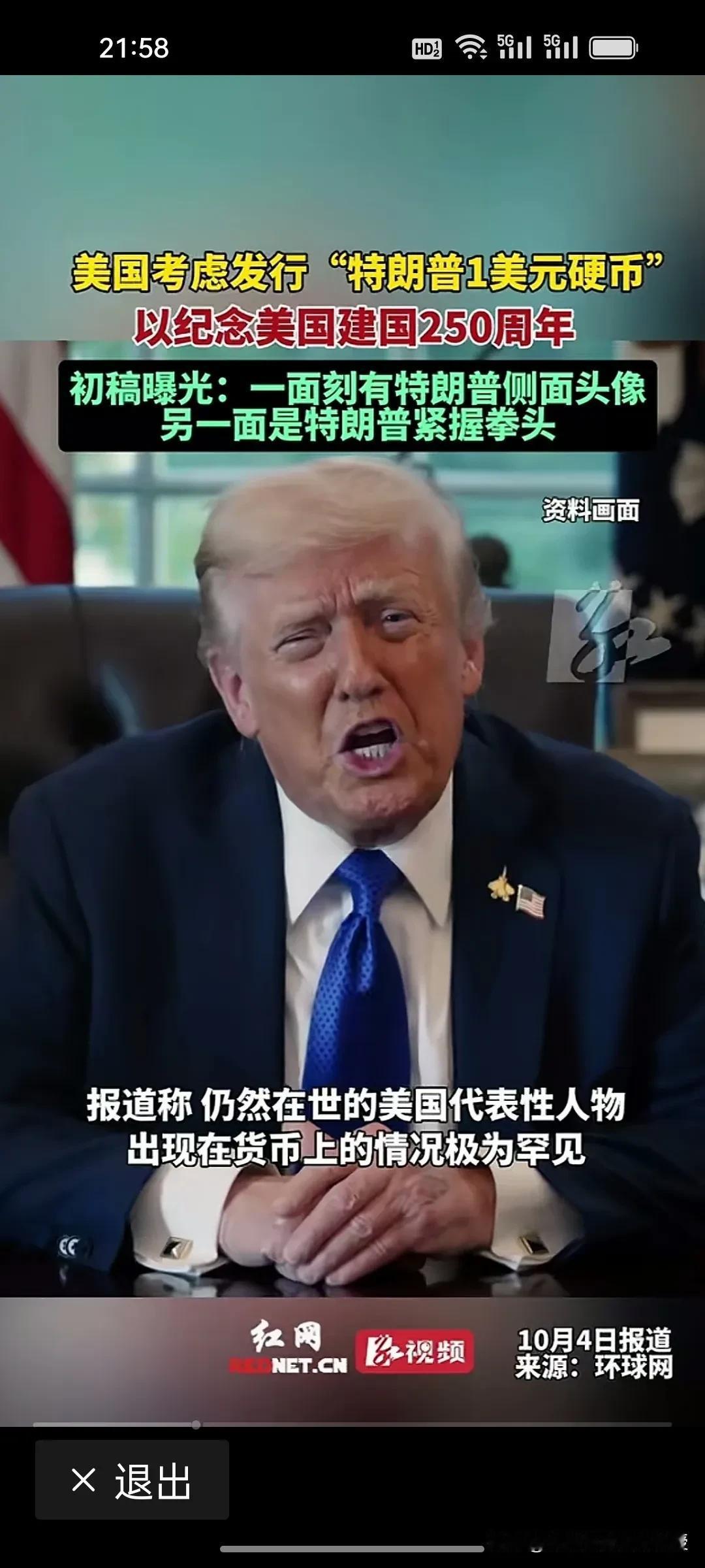 特朗普要把自己印在美国1美元硬币上来纪念美国建国250周年!根据《环球网》报道,美国财政部证实了确实考虑发行双面印有特朗普肖像的1美元硬币。可是,特朗普还在世,这种做法在美国很罕见。特朗普家族不但投资虚拟货币,现实的硬币也要涉足。今年6月,特朗普恰逢自己生日时举行了美军大阅兵,现在又要造币,实在是太注重个人英雄主义形象的塑造了!