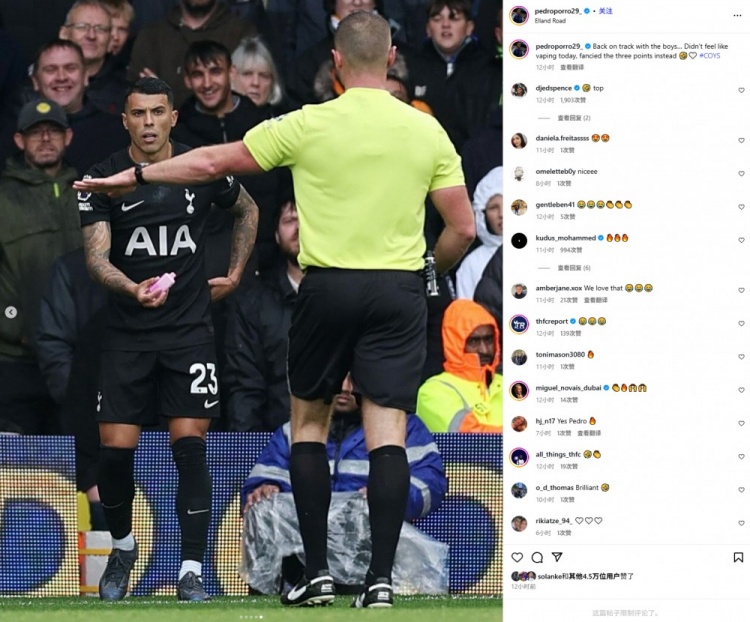 在热刺2-1击败利兹联的比赛中,波罗在准备开角球时被一个粉色电子烟击中,他捡起后假装吸食,逗乐了围观的主队球迷。