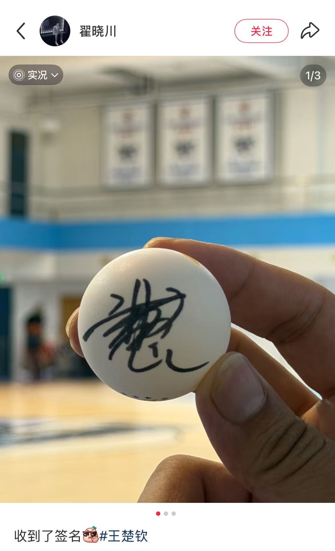 赵睿、翟晓川现场观战WTT中国大满贯的比赛,赛后,两位球员都在社媒晒出了王楚钦的签名。