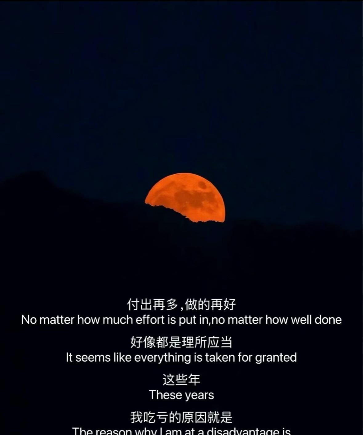 2025年9月8日凌晨那场三年一遇的“红月”刷爆朋友圈,大家纷纷转发,盼着吸走水逆。 这红月,就像生活给我们的一记提醒。 曾经以为真心能换来真心,可现实却很残酷。 付出在有些人眼里成了理所当然,一句“外人始终是外人”就把你的掏心掏肺全盘否定。 就像交朋友,年少时呼朋唤友,以为四海皆兄弟,可时间一长,才发现真正值得相交的没几个。 别再傻傻地对所有人善良,要把温柔留给懂得珍惜的人。 对自己好点,才配得上生活的偏爱。 #晒图笔记大赛#