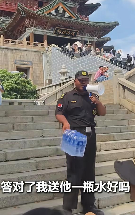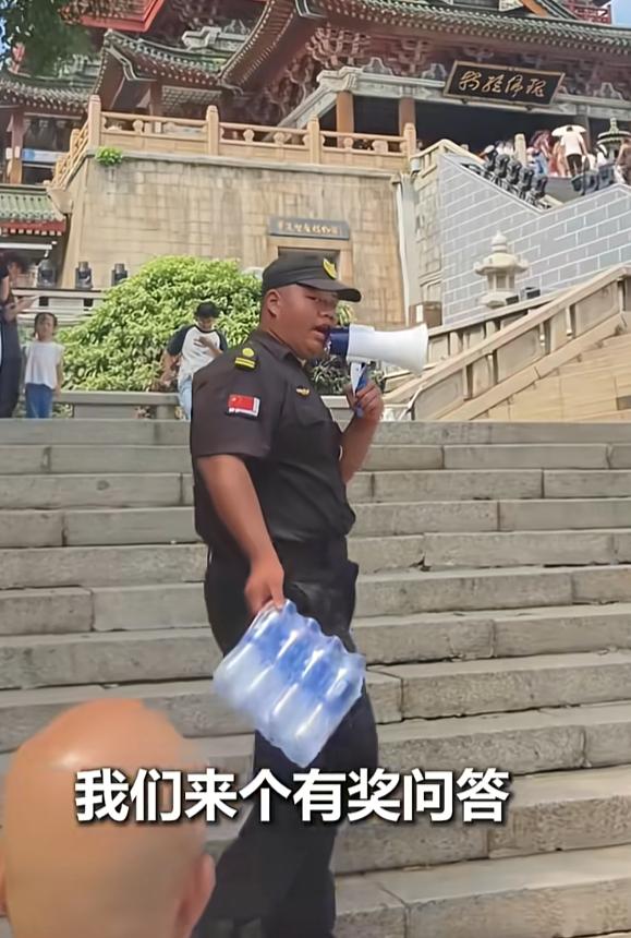 这保安火上人民日报了! 近日,江西南昌的滕王阁,因为国庆旅游人数太多,景区不得不对游客进行限流,可是在楼下等待的游客就不愿意了,从全国各地不远万里赶过来,现在却只能在楼下眼巴巴的看着别的游客玩,心里别提有多难受了,这时候景区的保安小哥站了出来,没有对游客呵斥,反而与游客们玩起了游戏,网友:看完保安小哥的表现,发现自己胜任不了保安这份工作! 当游客们得知因为景区限流,只能在滕王阁下看着别人玩时,心里别提有多委屈了,都是不远万里带着家人来的,结果现在只能在下面干站着,慢慢的心里就有了怨气,排队的队伍也渐渐看是散乱,甚至有人想直接闯过去游玩。 保安小哥一看这可不行,必须得把秩序维护住,可是他没有对人群呼来喝去,也没有强硬的维持秩序,而是积极的承认错误,承认是自己和景区的工作失误,导致游客们现在要在外面等待,对游客们表达了自己的歉意。 为了让游客们等待时不那么无聊,保安小哥还把给自己准备的水拿来出来,做为奖品,跟游客们玩起了有奖抢答的游戏,问游客们有关于滕王阁的问题,谁答对了就有一瓶水喝,游客们看到保安小哥的举动也感到很新奇,积极跟小哥做起了游戏,在说说闹闹之间,排队等待的时间就过去了,不少游客都对保安小哥真诚靠谱的行为点赞,即维持了秩序,也安抚住了情绪,实现了景区跟游客的双赢。 网友把这段视频发到网上后,立刻引起了网友的们的点赞和转发,就连人民日报都转发并留言,为小哥点赞。 有网友说:保安小哥这一行为的价值,远不止于“送水”或“维持秩序”的表层意义。它背后折射出的,是景区服务从“管理思维”向“服务思维”的转变,当保安小哥不再是单纯的秩序维护者,而是以“游戏组织者”的身份,将滕王阁的文化元素与游客的即时需求相结合,既化解了流量压力下的潜在矛盾,又让游客在等待中感受到了人文关怀。 也有的网友让各地的文旅多学习一下保安小哥的做法,有问题不要紧,正视问题,解决问题,游客们都是能理解的。 保安的哥哥也在评论区说:为弟弟的优秀感到自豪。 当然,还有更多的游客建议景区给保安小哥涨工资,这么优秀的保安小哥可真不好找了。 就像有网友说的,像国庆这种旅游旺季,景区出现人挤人的情况是很正常的,景区为了安全,实行限流政策也可以理解, 可是面对游客的态度,却将景区分成了三六九等,有些景区的管理人员面对游客大呼小叫,好像游客过来游玩是欠他们的一样,对游客没有耐心,那游客们下次肯定不会再来。 而有的景区则是真诚待人,承认自己的问题,尽最大能力为游客服务。这样的景区哪怕景色没那么好,也会有越来越的游客过来。 这位保安小哥的行为就是给所有景区的管理人员,上了新的一课,面对游客就是面对自己的亲人,不应是冷漠对待,要做到用真心换真心,让游客们能体会到在景区游玩的温暖。 你对保安小哥的行为怎么看?评论区说说吧。