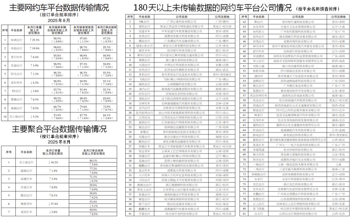 据网约车监管信息交互系统监测,截至8月31日,全国共有393家网约车平台公司取得网约车平台经营许可,环比增加1家。网约车监管信息交互系统8月份共收到订单信息7.89亿单,环比增长0.2%。