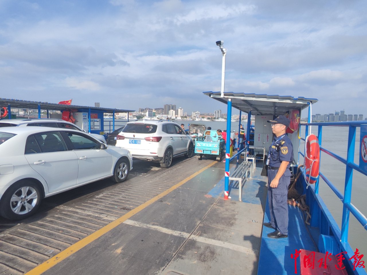 10月4日,荆州海事局江陵海事处通过智能化监管与现场执法相结合的方式深入辖区主要渡口、重点水域进行现场盯防与维护,对渡船进行跟船检查,现场检查渡口安全警示标识、旅客上下安全措施落实情况等,提醒渡船负责人落实安全生产主体责任,严禁超载、抢头、违反禁航指令冒险航行,确保两岸人民出行安全。