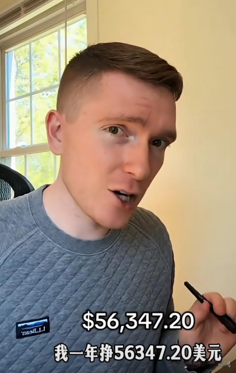 美国🇺🇸男性晒收入分配 这位美国男士年收入💲56347.20,当然是美元了。他年收入扣完税和医疗保险等其他福利扣除项之后的金额,像牙科保险,视力保险,税后净收入是一年36000美元。 分配下去也就是每月3000美元,但是他每月要还600美元学生贷款,那么一年就要还7200美元,这大概占没年净收入36000美元的20%。还有房屋租赁费每月825美元,一年房租总共是9900美元,占他年收入的27.5%。也就是学生贷款和房租这两项总和大概占他总收入的47.5% 还有汽油,水费,电费,汽车贷款他还没算。每年净收入的50%是他总来安排日常生活开销。他说不知道其他人是不是也和他一样,他觉得很离谱,总觉得手里的钱不够花。 想说的是不利于润人的话不要说,你们应该说刷盘子三个月就能买别墅,不干活政府也每个月给救济金,社会安稳,人民友善,欣欣向荣,你们这样说,我们这边的250怎么润。