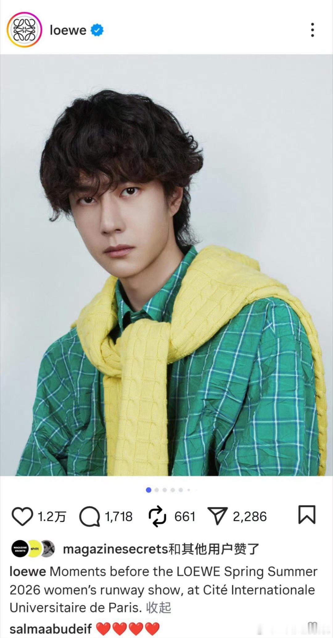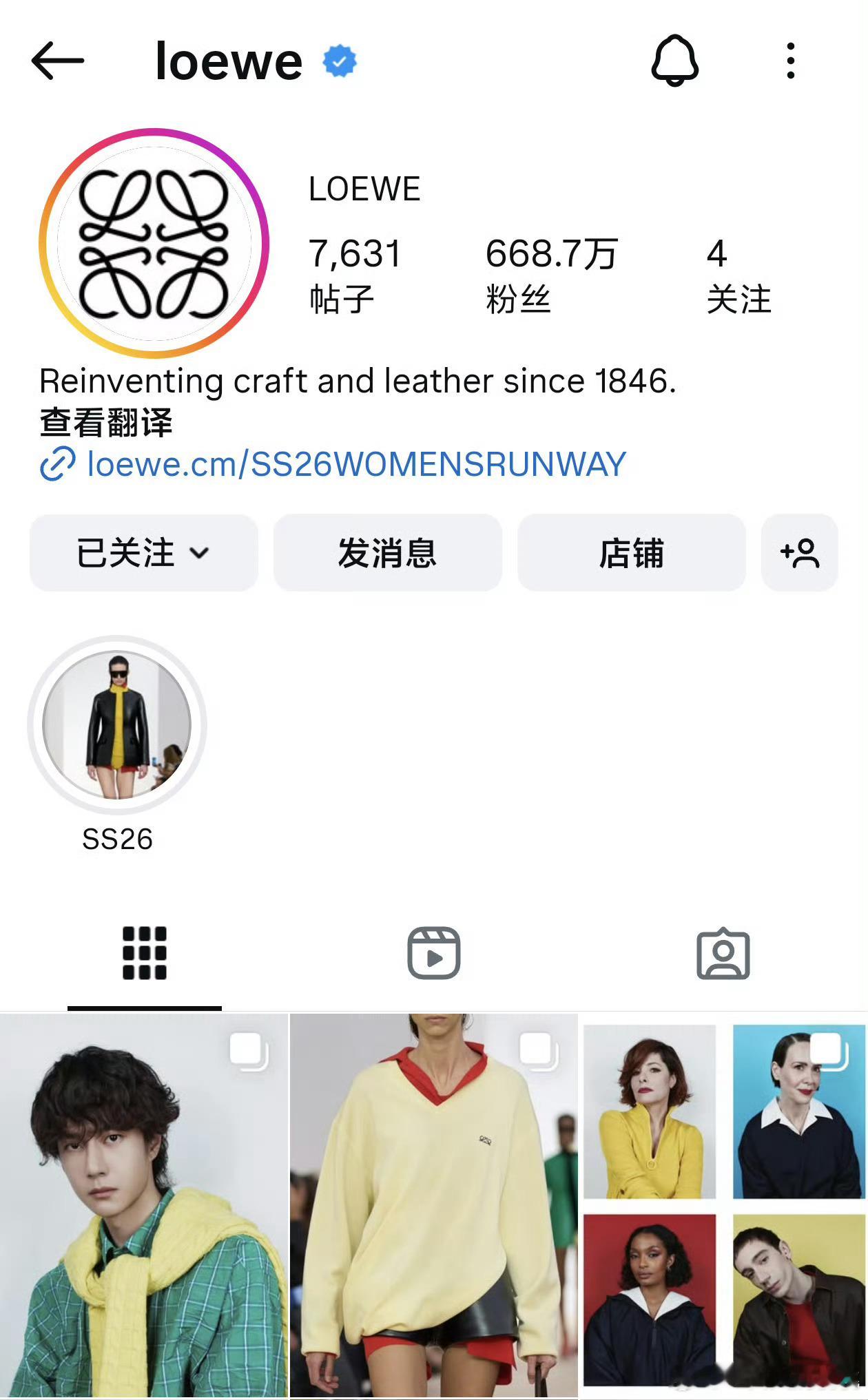 LOEWE首页认领全球品牌代言人王一博的看秀造型,品牌门面是这样的[爱慕][爱慕][爱慕]