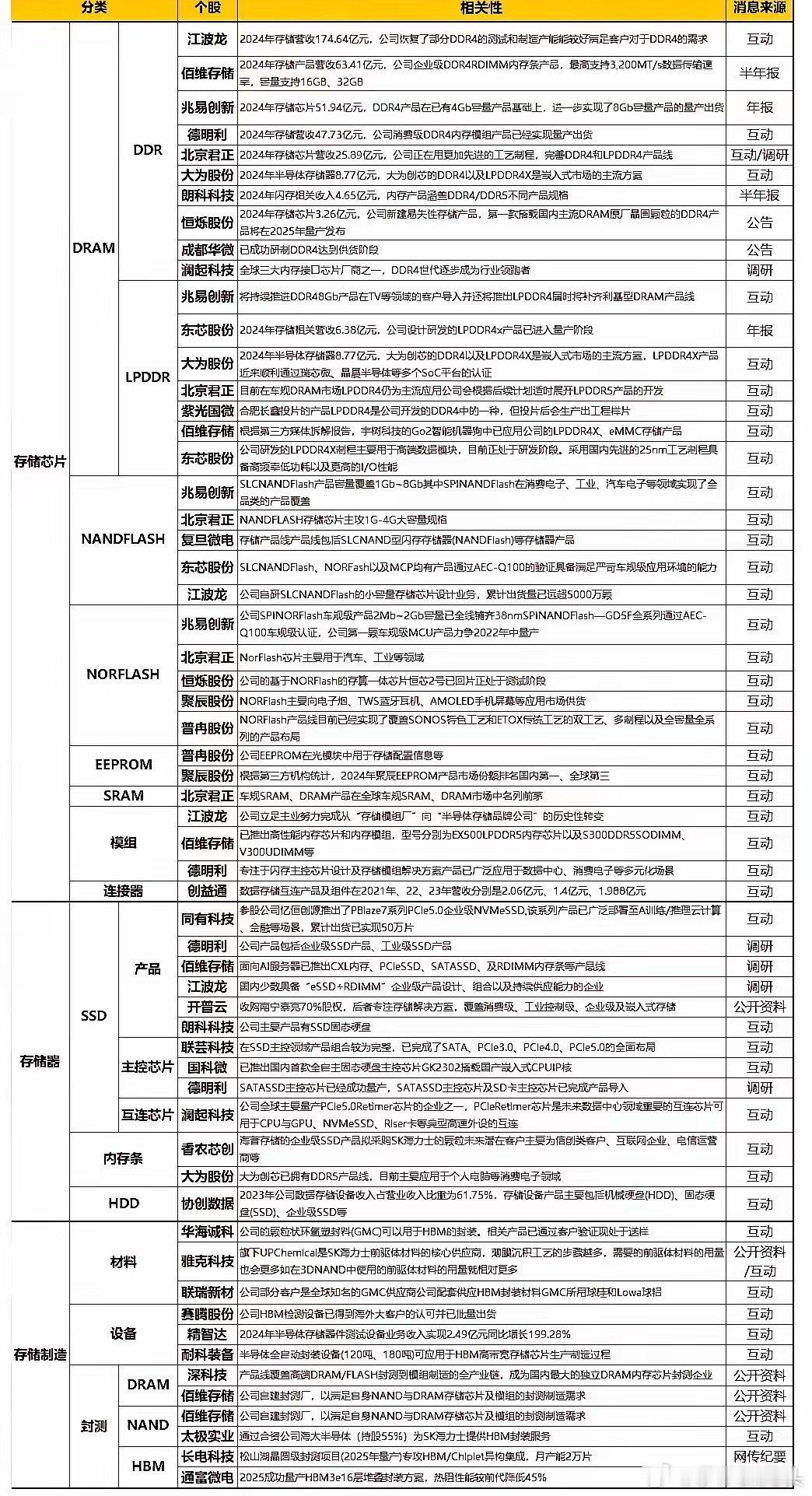 存储芯片产业链全梳理,交易大家收藏起来一、核心个股分类1.存储芯片与模组(含存