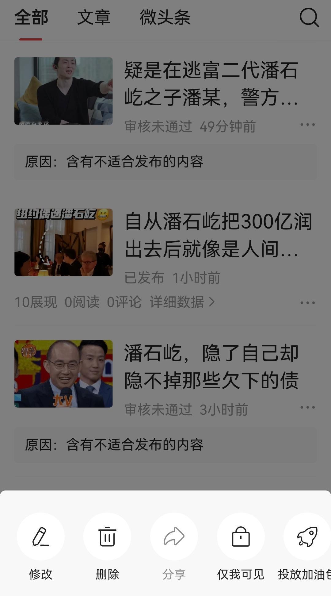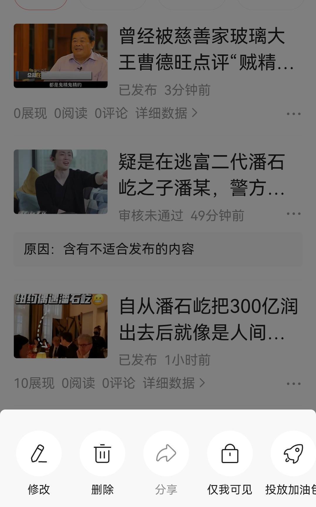 大家发现了没有?如今的头条限制是越来越大了,负面的话和违禁词是越来越多了,就连某些人的名字都会是违禁词!甚至带姓都不行! 看到很多离开头条的大V原本还不相信,现在我是彻底的相信了! 说话得小心翼翼,码字得提心吊胆,因为如果一个不小心你辛辛苦苦做出的成果就会变成杨白劳! 头条打工,太难了!