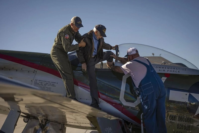 99岁高龄的二战老兵 Bernie Armstrong乘坐P-51重返蓝天