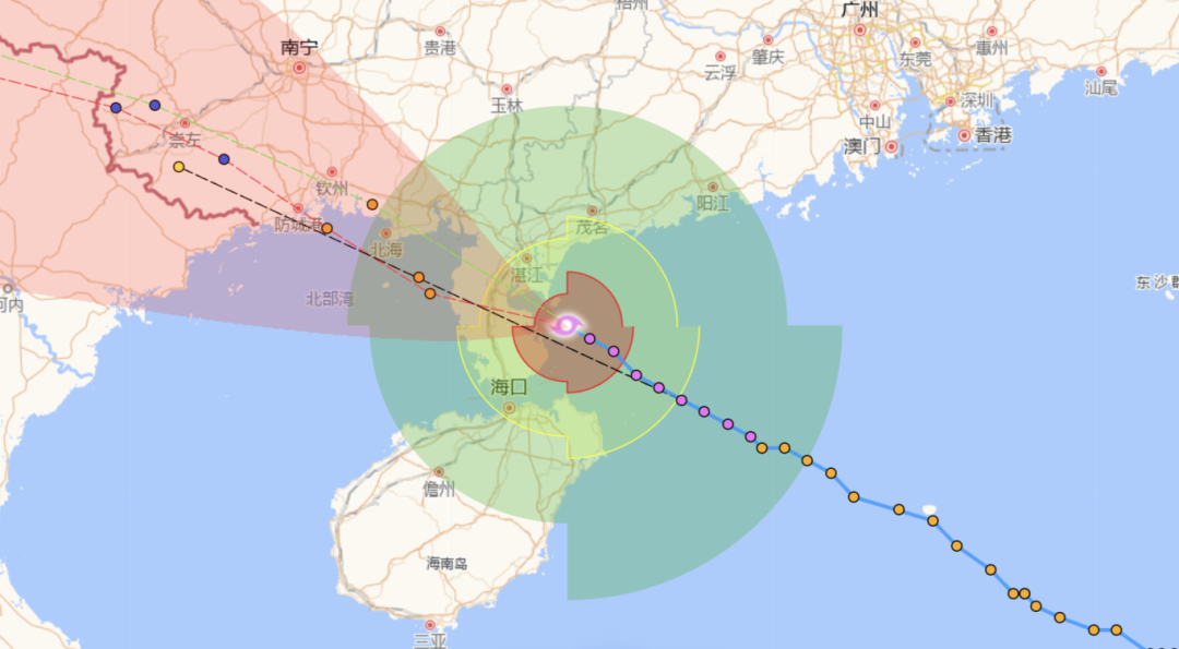 风情研判:5日下午-6日早晨,我市陆地及沿海海面风力自东向西逐渐加大到10~12级、阵风13~14级,其中台风中心经过区域(重点徐闻、雷州、遂溪、东海岛)旋转风13~14级、阵风15~16级,12级以上大风影响持续时间8个小时左右;6日凌晨起风力影响逐渐减弱。