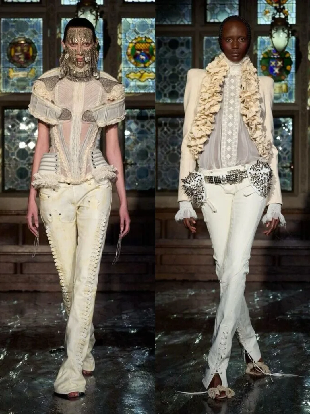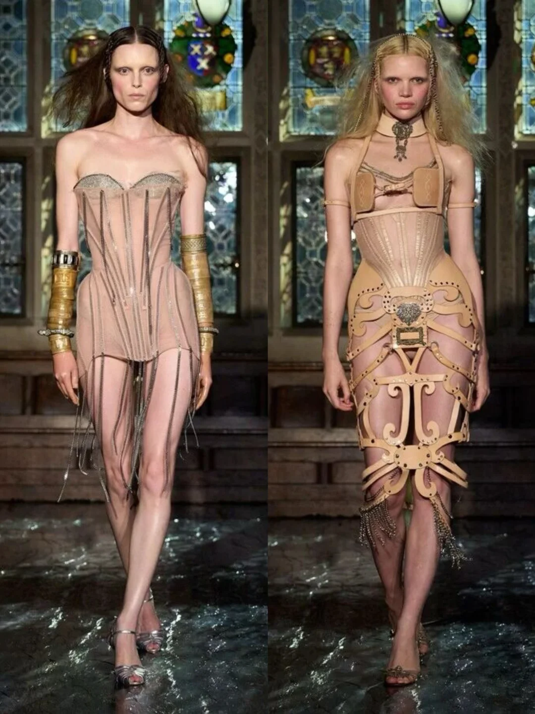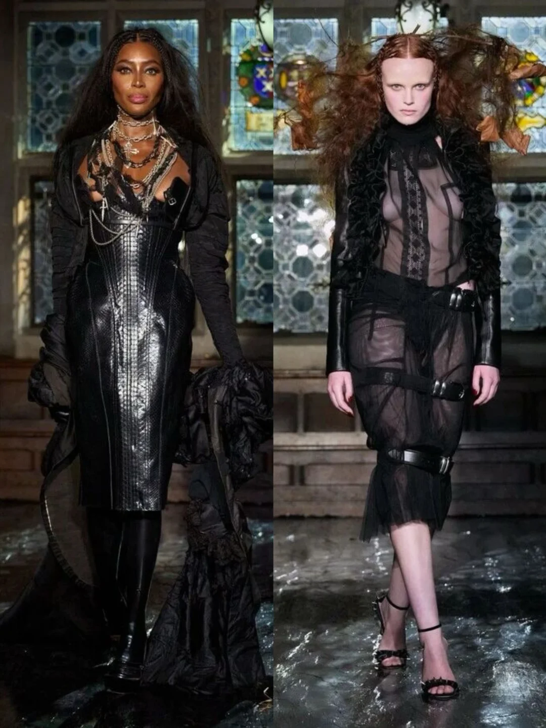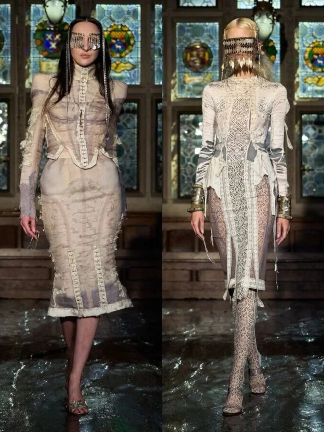 系列通过破碎蕾丝、撕裂布料等细节,隐喻女性从社会束缚中挣脱的过程。压轴造型中,深红连衣裙模特如火焰般燃烧,象征着自由,金属链条与柔软蕾丝、硅胶红樱桃形成对比,暗黑中透出俏皮。