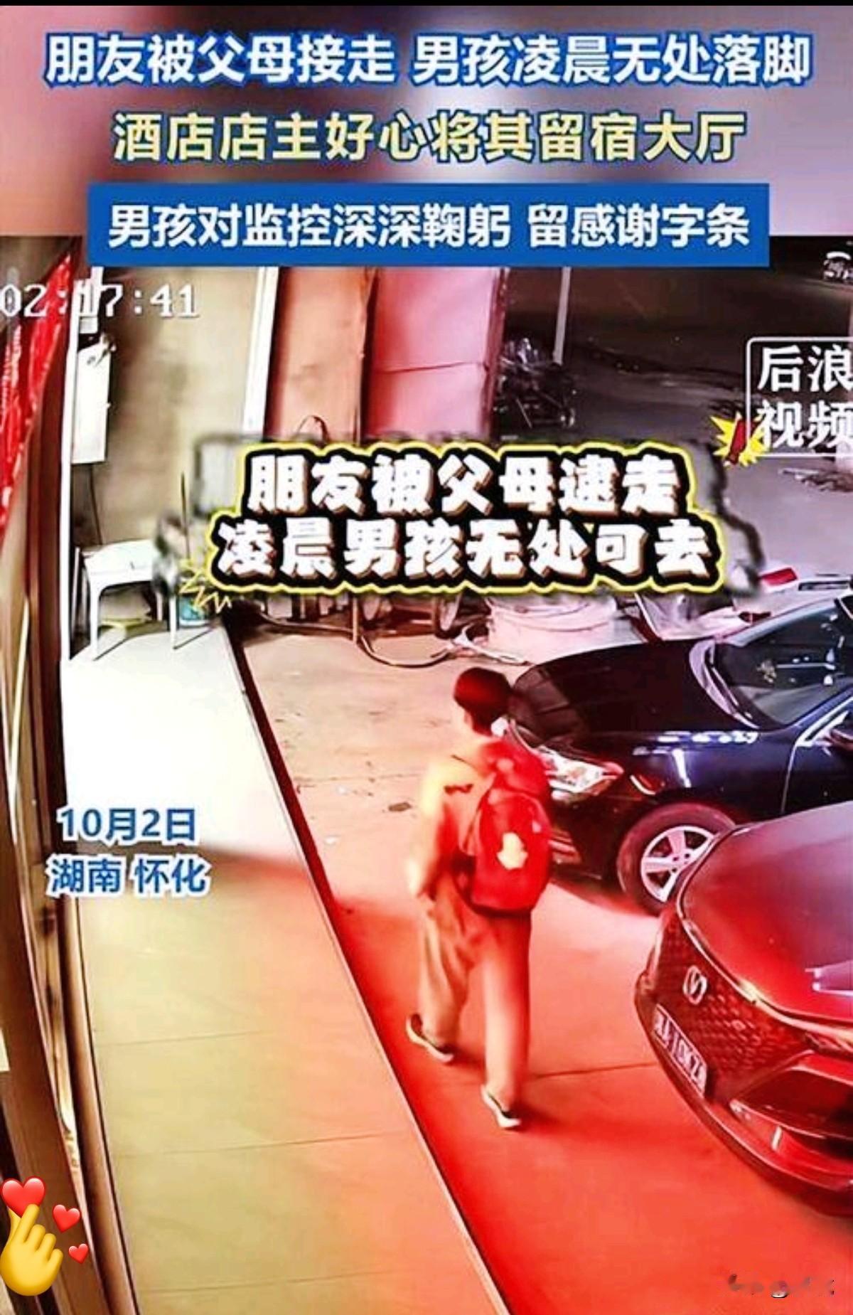 如果深夜街头出现一个独行的孩子,你会为他停下脚步吗? 这个夏天,在湖南火马冲的深夜,有个12岁的少年正在经历人生中最漫长的黑夜。他兴冲冲从怀化赶来见同学,却眼睁睁看着同学的父母把人接走,自己像件被遗忘的行李留在陌生街头。 凌晨两点,街灯将他的影子拉得很长。在酒店门外徘徊的第17圈,他终于推开了那扇门。没想到,这个鼓起勇气的决定,成就了今夏最动人的相遇。 "姐姐,我能在沙发上借住一晚吗?"少年怯生生的请求,换来的是超出想象的温暖回应。女店主不仅点头答应,更在少年洗漱时悄悄布置了一个临时小家:调暗的灯光驱散恐惧,旋转的电扇送来清凉,点燃的蚊香守护安眠。这些细腻的举动,让少年在卫生纸写下的"谢谢"显得格外珍贵。 而当监控记录下少年对着摄像头深深鞠躬的瞬间,我们突然明白:善意从来都是双向的奔赴。就像少年离开前不忘拔掉风扇插头、整理好沙发,这些细节里藏着他最好的教养。 现在轮到我们思考:如果那天深夜,少年敲响的是你的门,你会成为第几个温暖故事的开始?在评论区告诉我,你是否也曾被陌生人的善意照亮过?