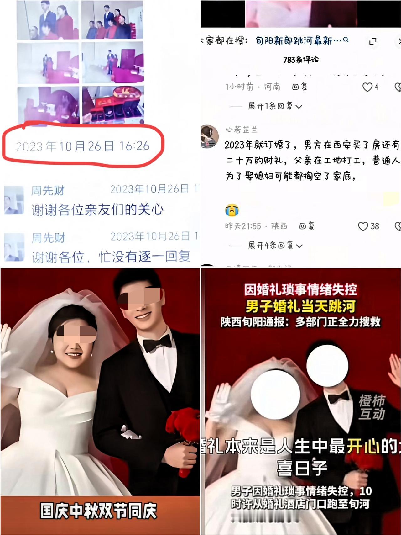 新郎跳河后续:2年前已订婚,丈母娘在当地颇有名气,60桌婚宴突然中断。 新郎29岁,研究生毕业,据说是老师,和新娘都来到酒店门口了,不知为何吵了起来,然后就跳进河里不见了。 警方说和彩礼无关,是“琐事”压垮了他,可什么样的琐事能比命还重? 农村家庭砸锅卖铁供他读书、买房、装修,他刚跳出农门当上老师,本该是“苦尽甘来”,却在一瞬间觉得“人间不值得”。 我始终觉得,压垮新郎的从不是某一件事,而是无数根稻草的叠加。 对农村出身的孩子而言,能跳出农门本就耗尽了全力。可到了大学、踏入社会才发现,有没有家庭的托举,人生简直是两条截然不同的路。 或许他早就觉得自己活得太累了,总在跟别人的差距里追赶,又总在旁人的眼光里被挑剔。 不管最后那根导火索是什么,在他纵身一跃的瞬间,心里一定只剩一句话:这人间,我实在待不下去了。