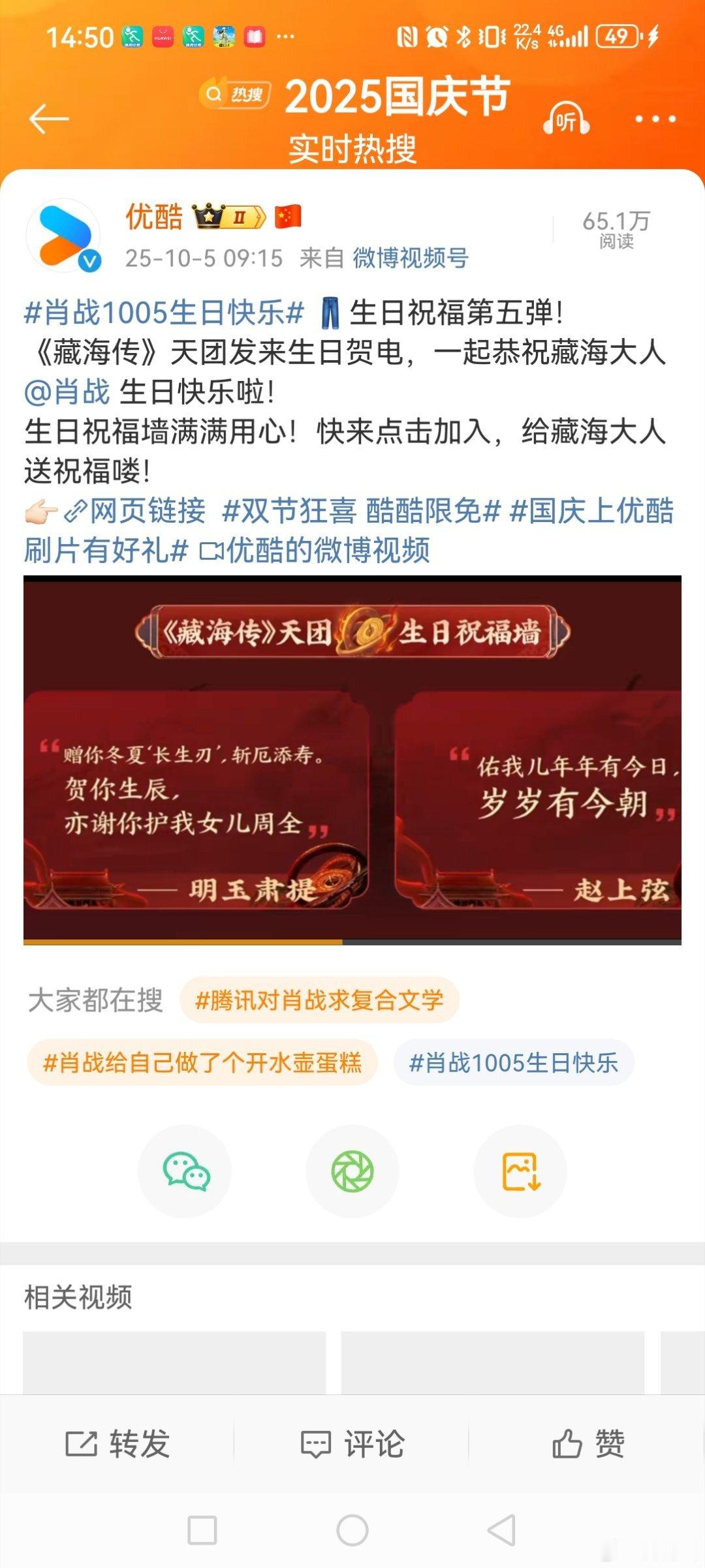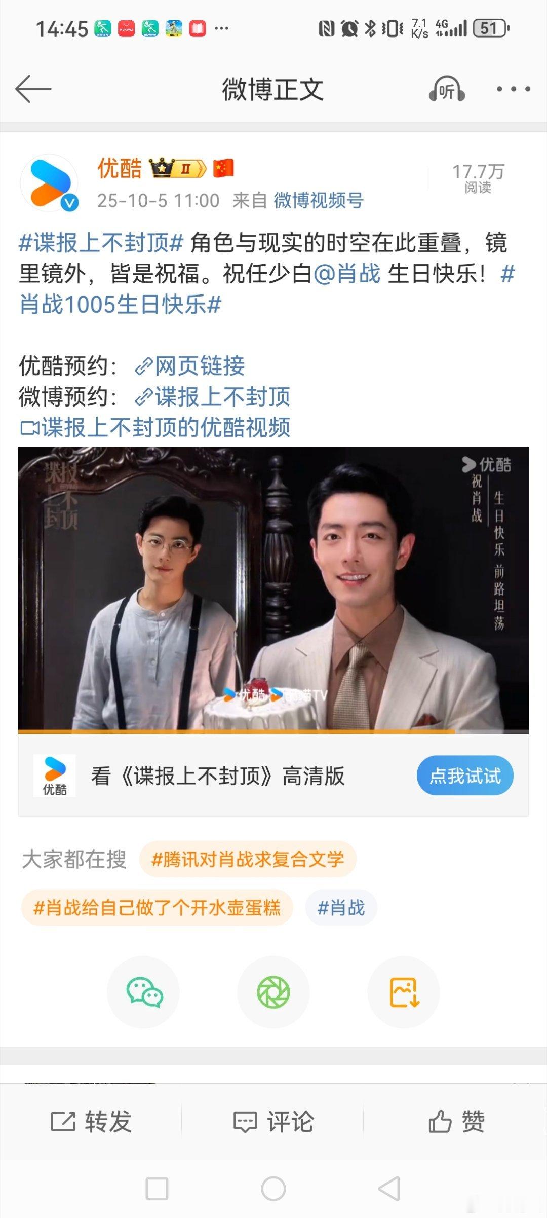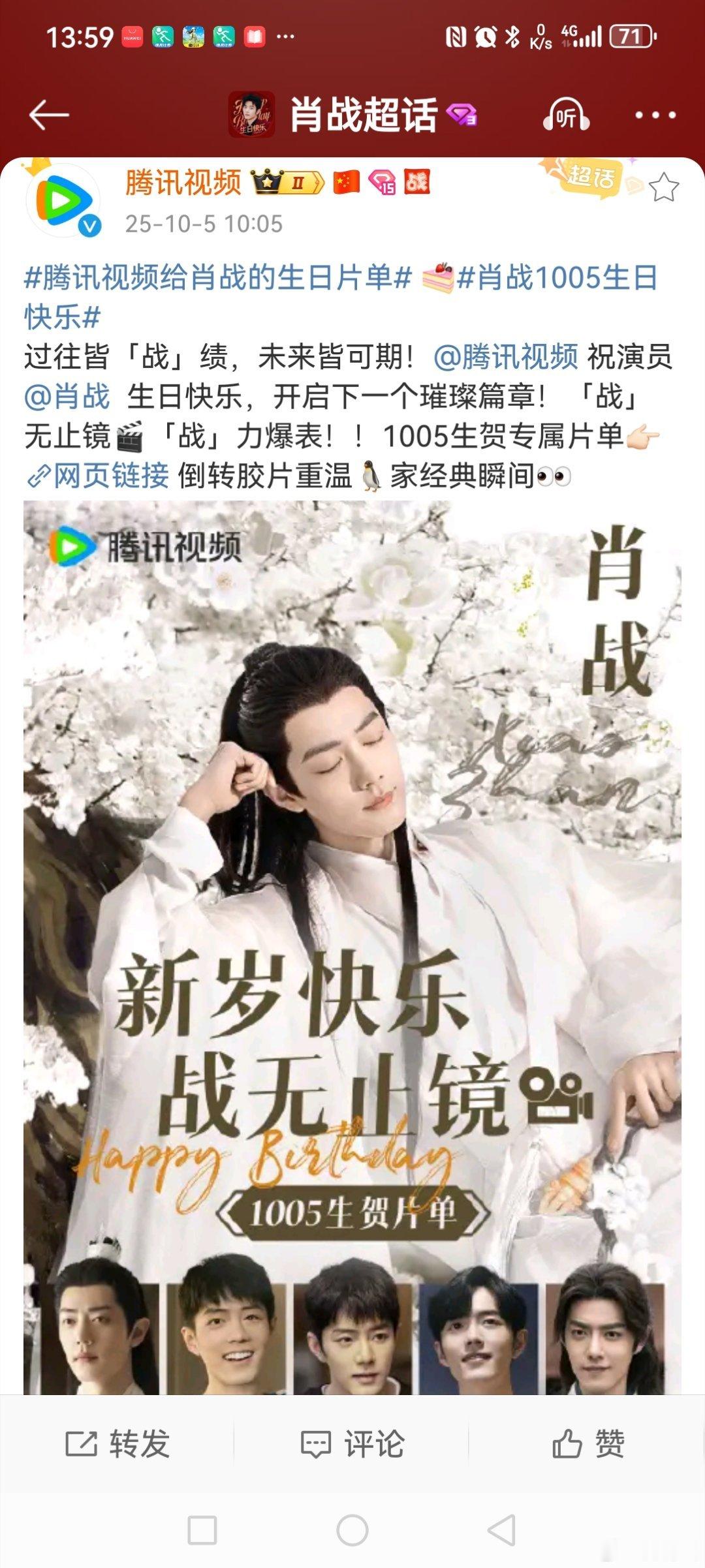 腾讯对肖战求复合文学10月5日,是34岁生日,连发三条视频,为庆生,被视为求