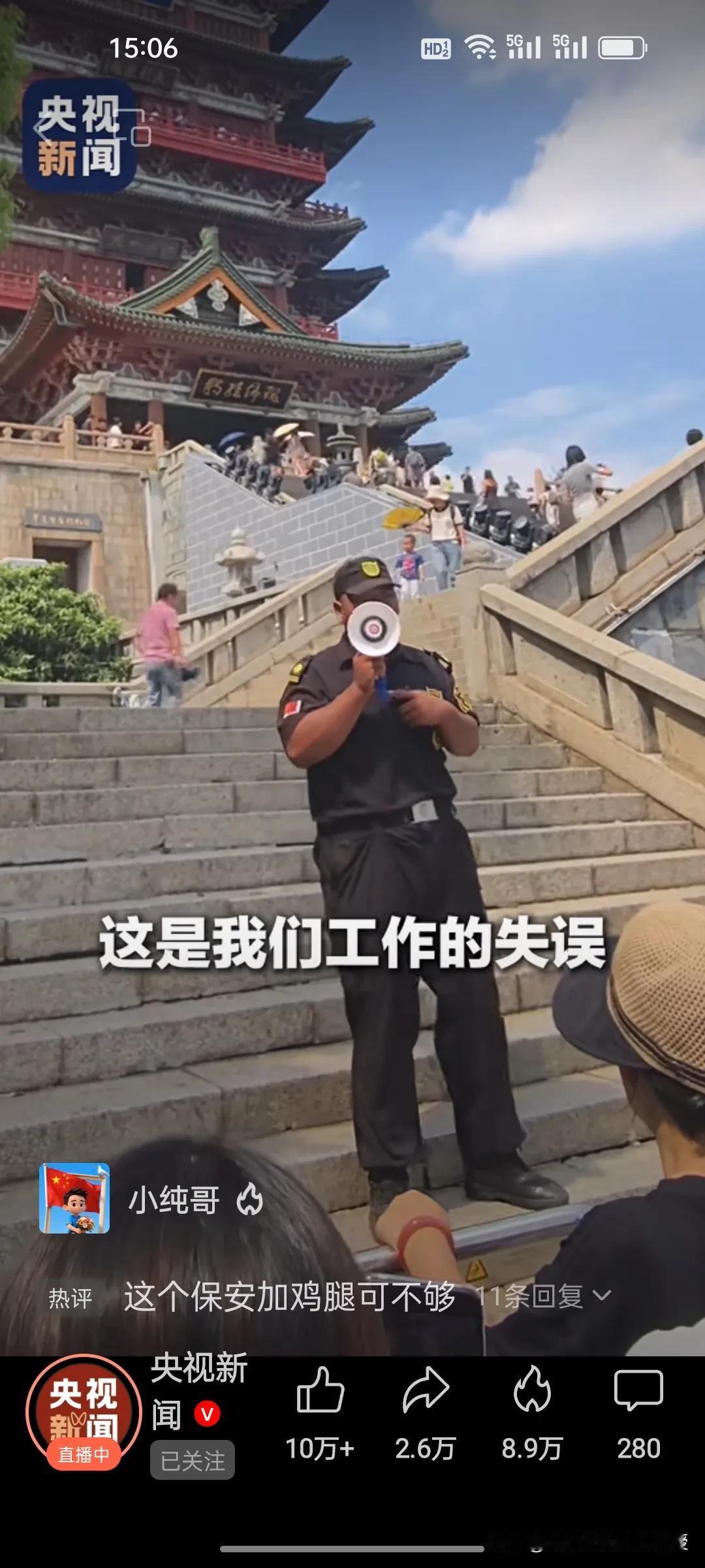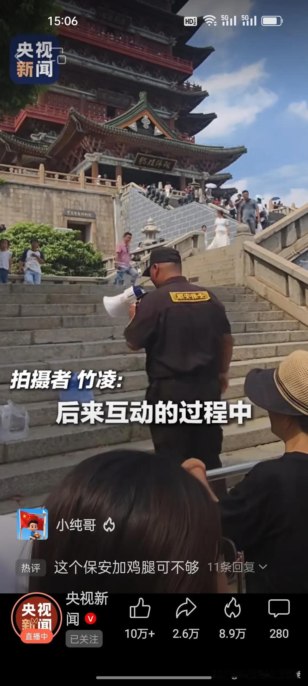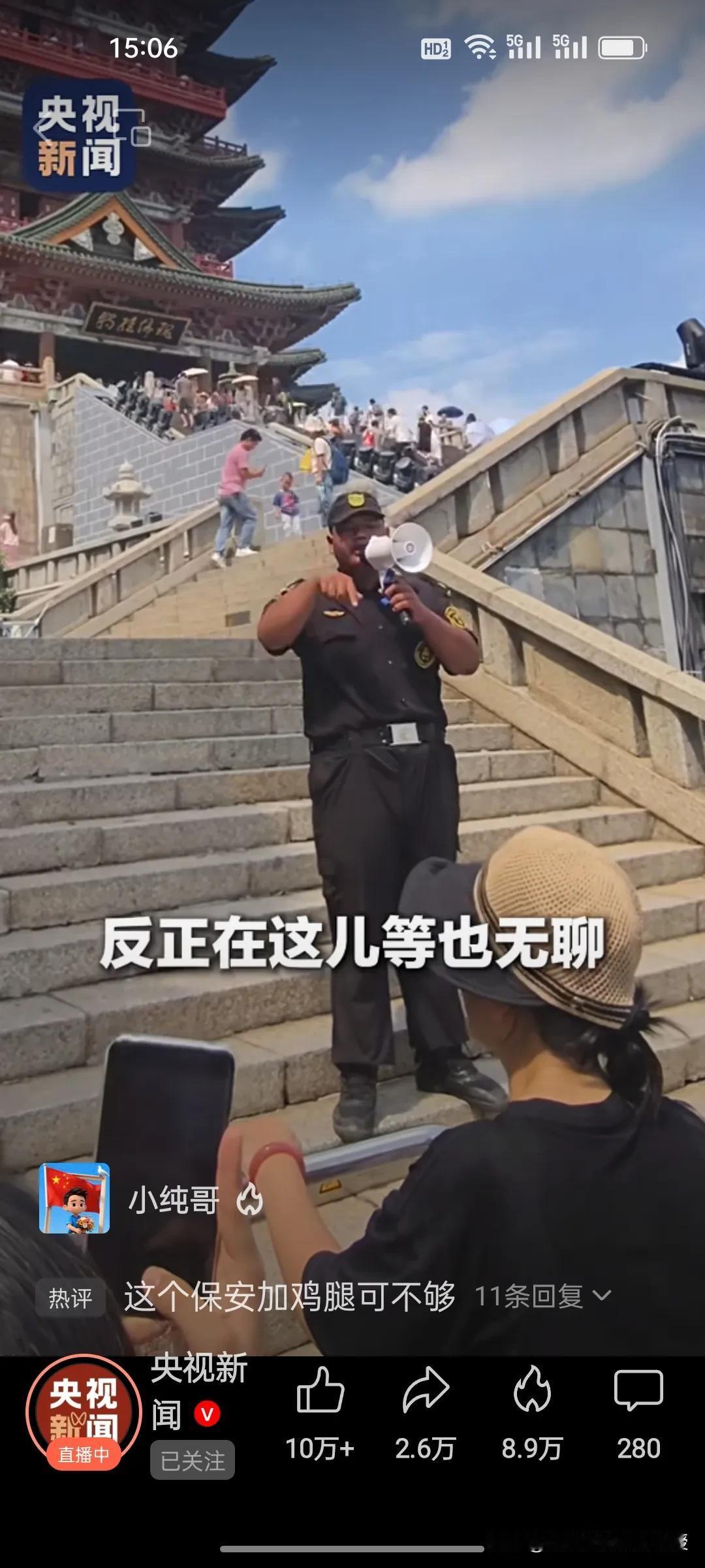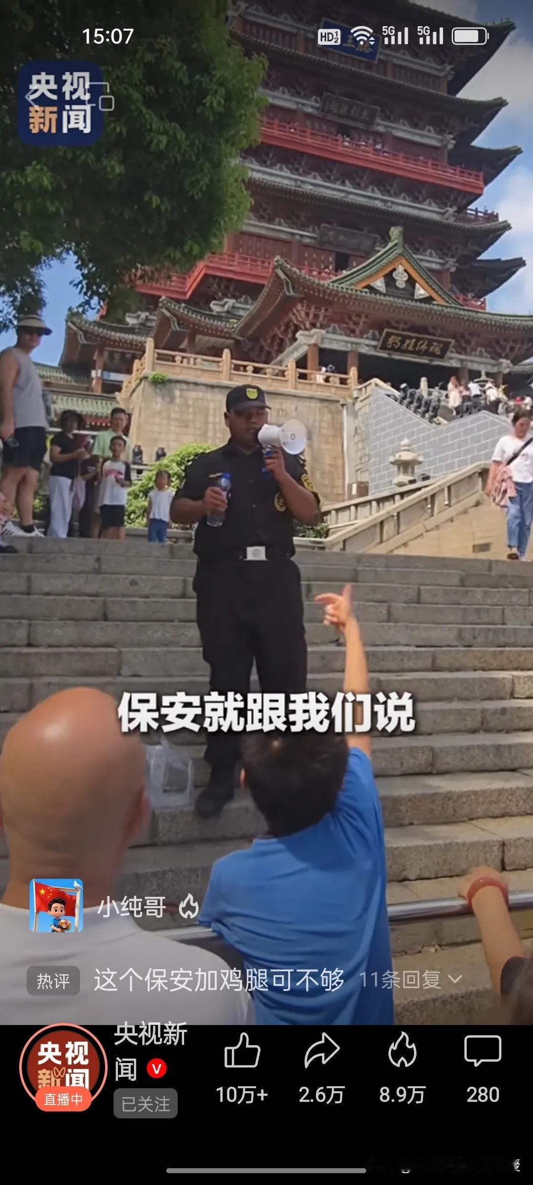 这名滕王阁景区的机智应变的保安让《央视新闻》都转发了!滕王阁有这样的保安真的让景区加分,江西文旅不止要宣传鸡排哥,更要给这位保安加鸡腿! 由于游客太多,滕王阁不得不限流,但是游客在太阳底下晒得太难受,这个保安灵机一动,想出了安抚游客情绪的好办法,他搬来一箱矿泉水,来个有奖竞赛的小游戏缓解大家的等待焦急的气氛。还让大家知道了滕王原来叫李元婴。游客本来还有些埋怨,觉得景区游玩等待时间过长,现在有个小游戏还能赢矿泉水,确实很不错。 国庆节各大景区都是人山人海,但是有这样温情举动的保安还是真的很稀罕,怪不得《央视新闻》都转发了,确实要给这个保安小伙子点个赞!让滕王阁景区的好感也大大加分!