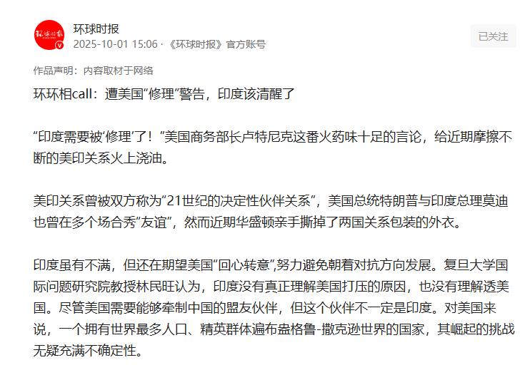 美国现在最想修理的是印度 为啥? 一是没打过巴基斯坦,让中国下水 二是在贸易战上和美国特朗普政府对着干。 三是太不听话了,就想着赚能源的差价,让欧洲不能更多的买美国的石油。 美国瞅了一圈,委瑞内拉不好下手,心一横就拿印度祭旗。