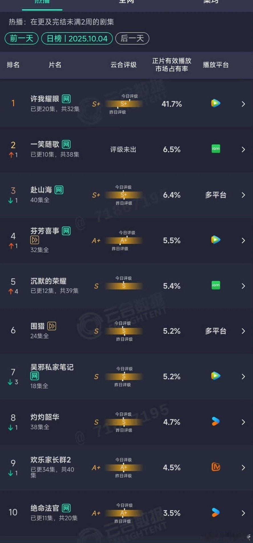 许我耀眼昨日云合41.7%,还有十多集,我觉得或许可以展望一下破50%