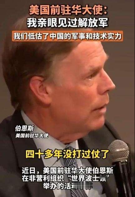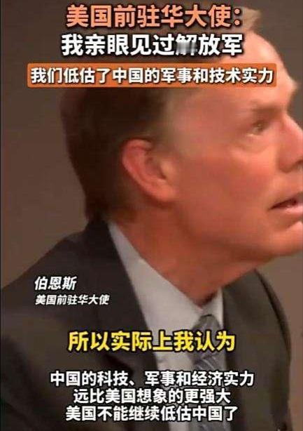 美国前驻华大使:我亲眼见过解放军,我们低估了中国的军事和技术实力。 近日,美国前驻华大使伯恩斯在出席非营利组织“世界波士顿”举办的活动中称:“中国的科技、军事和经济实力远比美国想象的更强大,美国不能继续低估中国了”。 伯恩斯还尖锐的反击了在美国有一种广为流传的观点称解放军因四十多年未经历实战,而战斗力遭质疑的观点,他坚定地表示,在他担任美国驻华大使期间,亲眼见证了中国人民解放军的强大实力,若是美国继续抱有这种偏见,必将在未来竞争中陷入被动,犯下战略错误。 伯恩斯还告诫美国称,我们要对付中国,不是去和他们打仗!他进一步说道:“中国有庞大的陆军、海军和空军,以及数量不明的导弹、核武器,现在与他们发生直接军事对抗,美国没有取胜的把握”。 其实,伯恩斯这确实说出了事实,中国国防建设经过几十年的发展,陆海空三军已经今非昔比。比较突出的比如陆军火箭军“东风系统”导弹技术已经突飞猛进,其它军种无人机、机器人都能配合作战等在战争起重大作用,海军方面三大航空母舰已经列装服役、055导弹舰等更让对手闻风丧胆,空军发展就更令世界刮目相看,两款五代机已入列服役、两款六代机也已经在试飞中等,中式武器系统化作战在巴印空战中更大放光彩,令各军事大国不敢小视,甚至多个领域的军事发展已经起到引领地位。 这正如中国著名的军事专家戴旭将军曾所言:“当美国在核武器对中国没有优势时,他会说,在与中国竞争中,运用军事实力并非是美国的优先选项”。