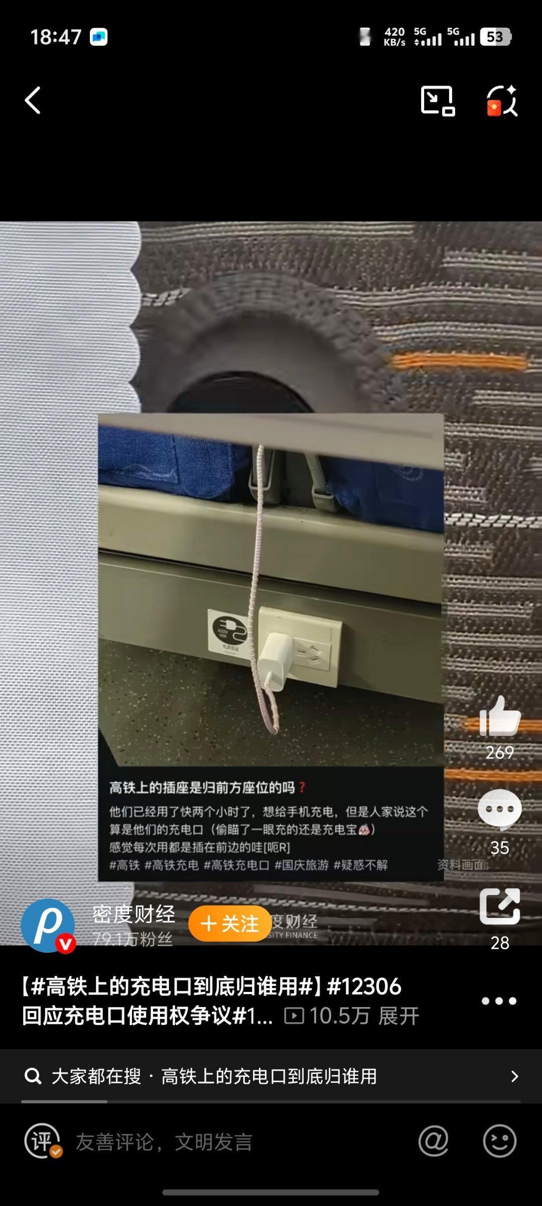 高铁 充电口使用权争议这个和座位不一样,又没有说一个特别明确的定义,其实去协商是最好的。