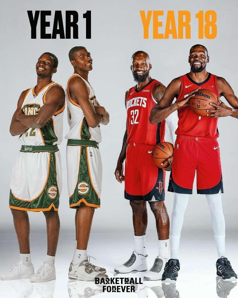 奇妙的缘分!从2007年在西雅图超音速成为队友开始,杜兰特与杰夫-格林在超音速、雷霆,以及后来的篮网、如今的火箭,都成为了队友,2007到2025,两位老球员再次在同一支队伍相聚,真是缘分妙不可言啊!nba媒体日