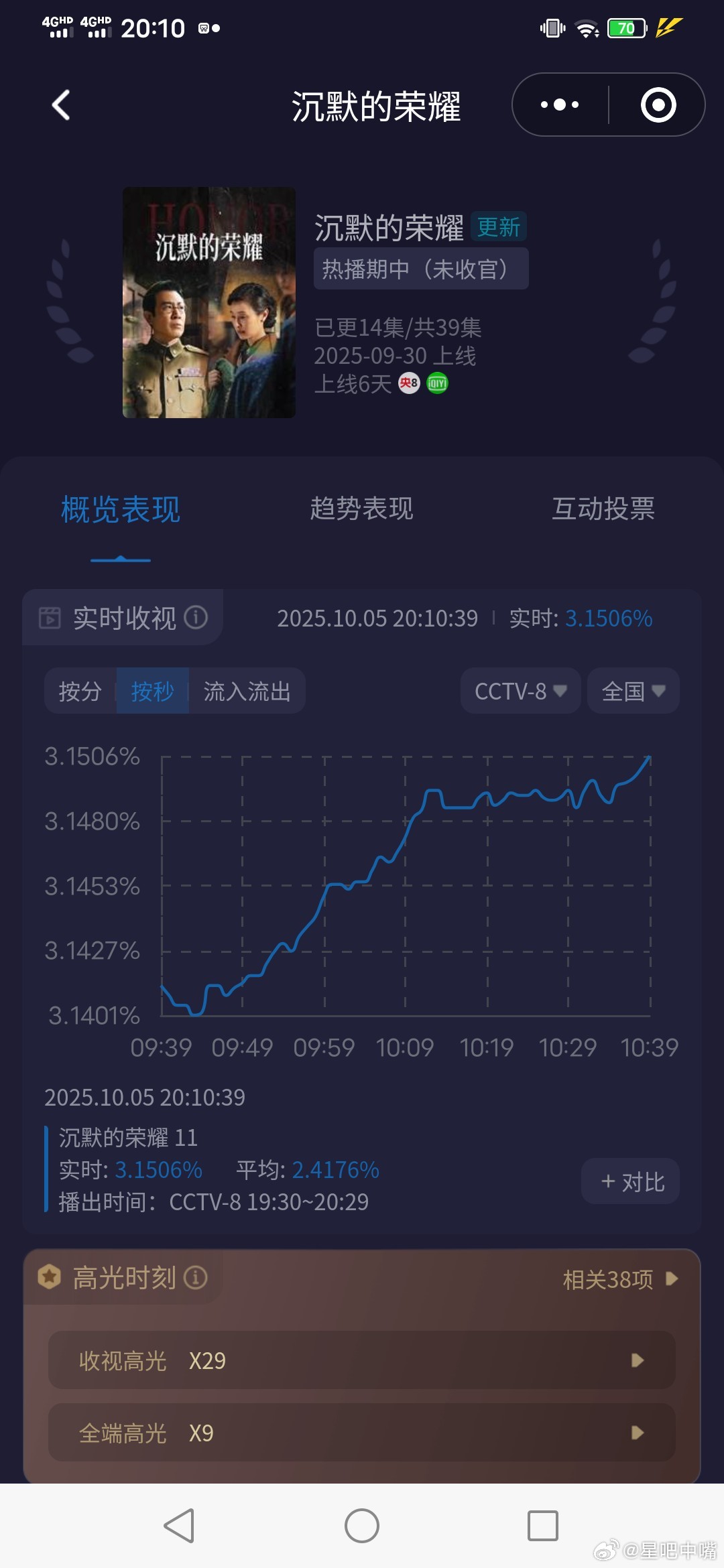 于和伟曾黎床头打架床尾和《沉默的荣耀》今晚酷云再度破3,第一集峰值3.15新高了