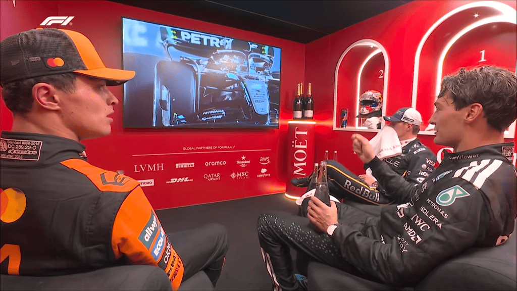 虎扑10月05日讯在F1新加坡站的赛后冷却室了,乔治-拉塞尔与兰多-诺里斯在观看比赛回放时谈到了法拉利车队本场的表现。