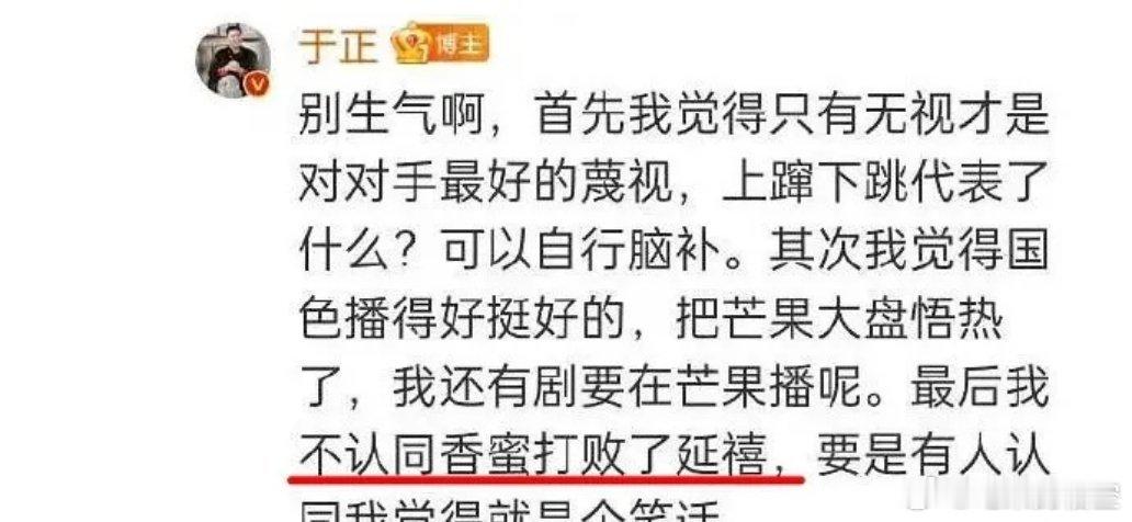 虽然我也不是很喜欢于正的一些狂傲言论,但是关于延禧和香蜜,谁更爆,我和于正的观点一致。
