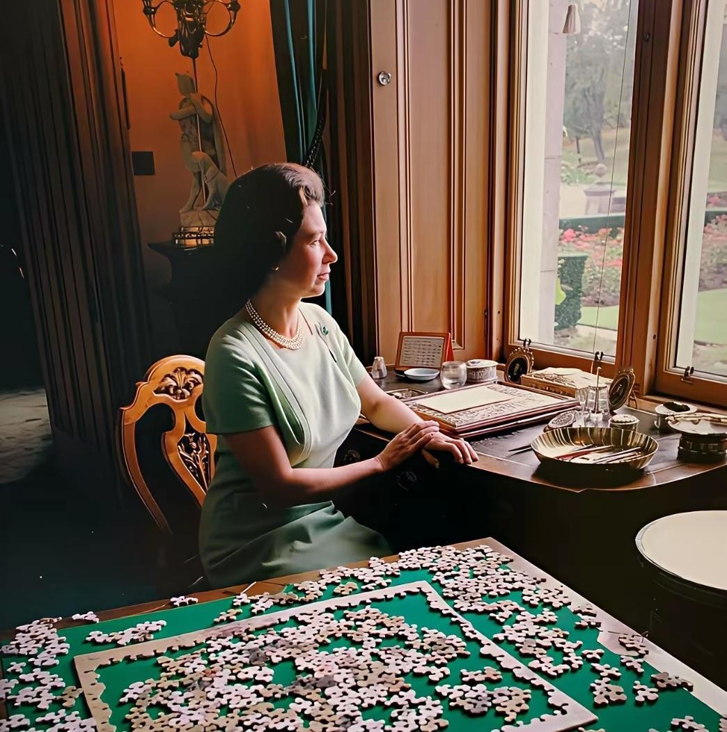 谁能想到,这一组照片来自于60多年前的英国 镜头下的女王典雅自信,窗外的风景着实抢镜,整个庄园透露着浓浓的浪漫,而室内则很现代化。 现代化的小物品、桌子上的拼图,无不展现着英女王的情调。一身绿色的连衣裙,搭配着珍珠项链和耳环,看起来既时尚又别出一格。 果然那个时候英女王的生活,就是顶级的存在,不是吗?