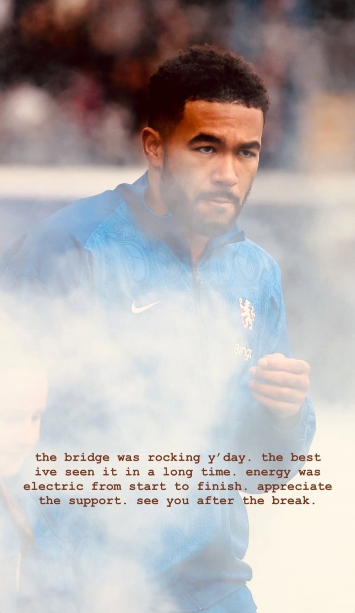 里斯-詹姆斯在社媒晒照,配文道:“蓝桥昨日的比赛山呼海啸,是我很长时间看到最棒的氛围。你们全场都保持了激情和活力,感谢大家的支持,我们国际比赛日后再见。”